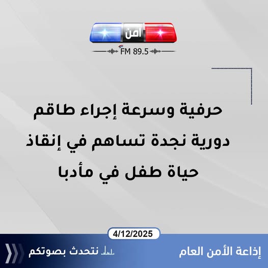 حرفية وسرعة إجراء طاقم دورية نجدة تساهم في إنقاذ حياة طفل في مأدبا