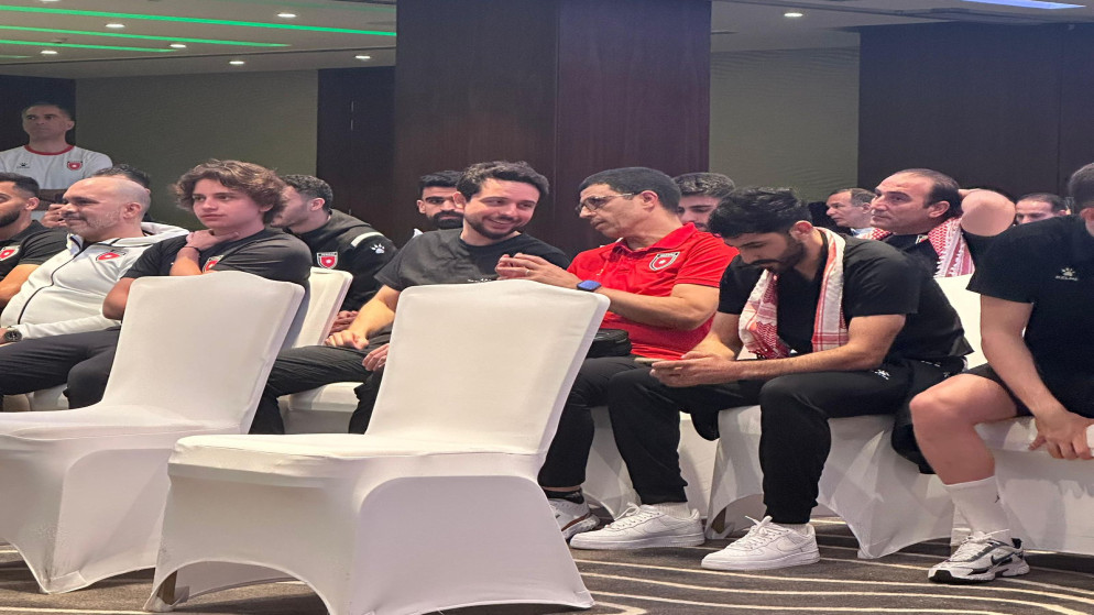 ولي العهد والأميران علي وهاشم يتابعون مباراة العراق وكوريا الجنوبية برفقة نشامى المنتخب