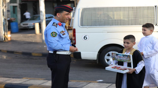 الأمن يوزع الحلوى على المواطنين احتفالا بعيد الأضحى