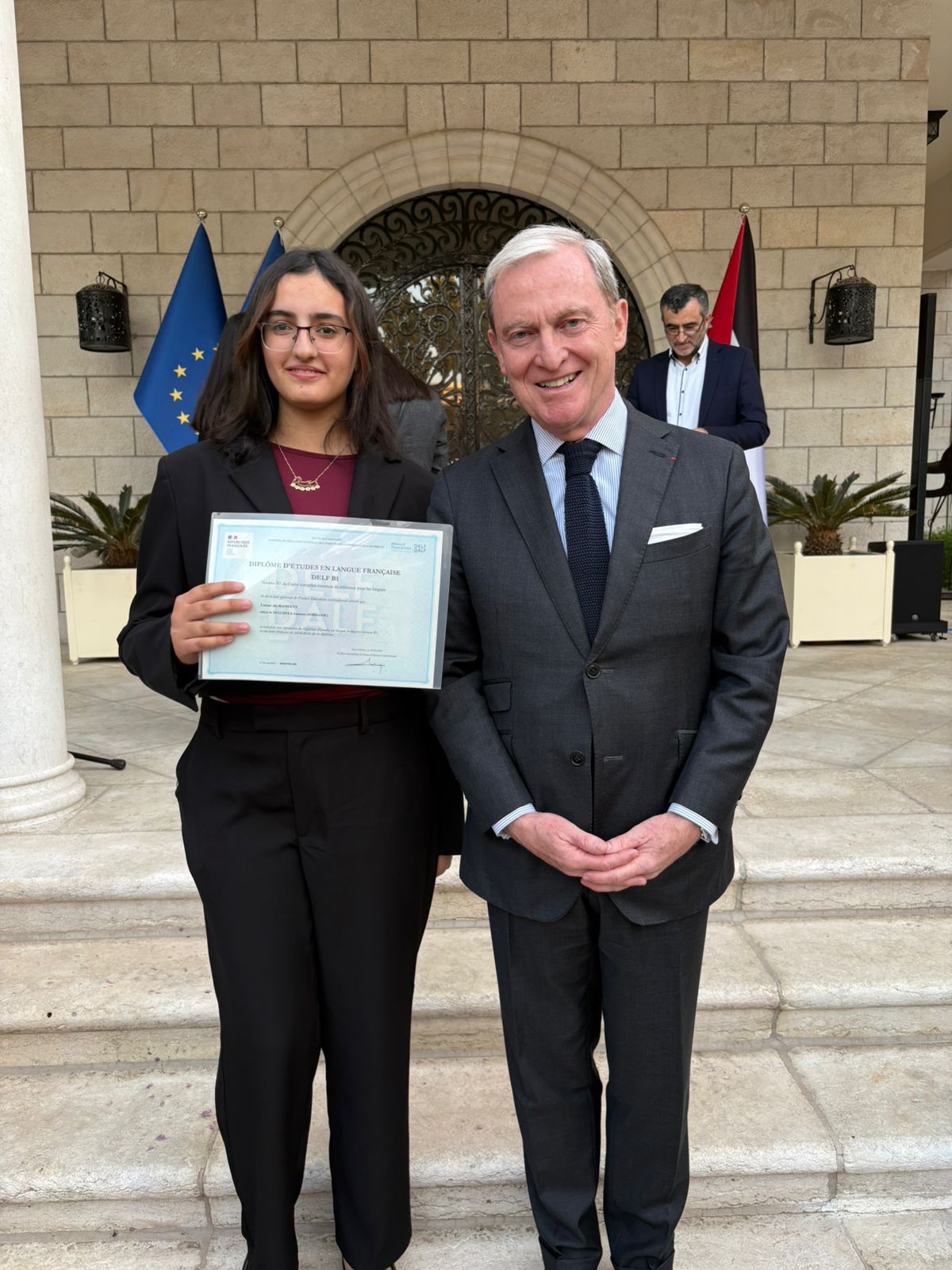 لمار الراميني تتفوق في امتحان اللغة الفرنسية والسفير الفرنسي في عمان يكرمها