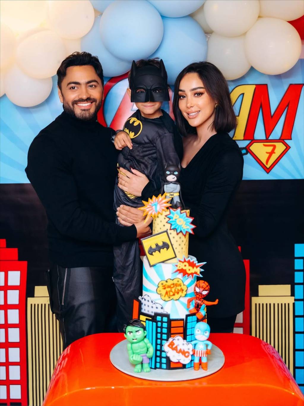 تامر حسني وبسمة بوسيل يحتفلان معاً بميلاد ابنهما آدم (صور)
