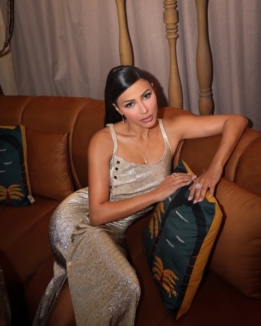 ديمة قندلفت تتألق بإطلالة مستوحاة من العباءة الشرقية مع مجوهرات فخمة