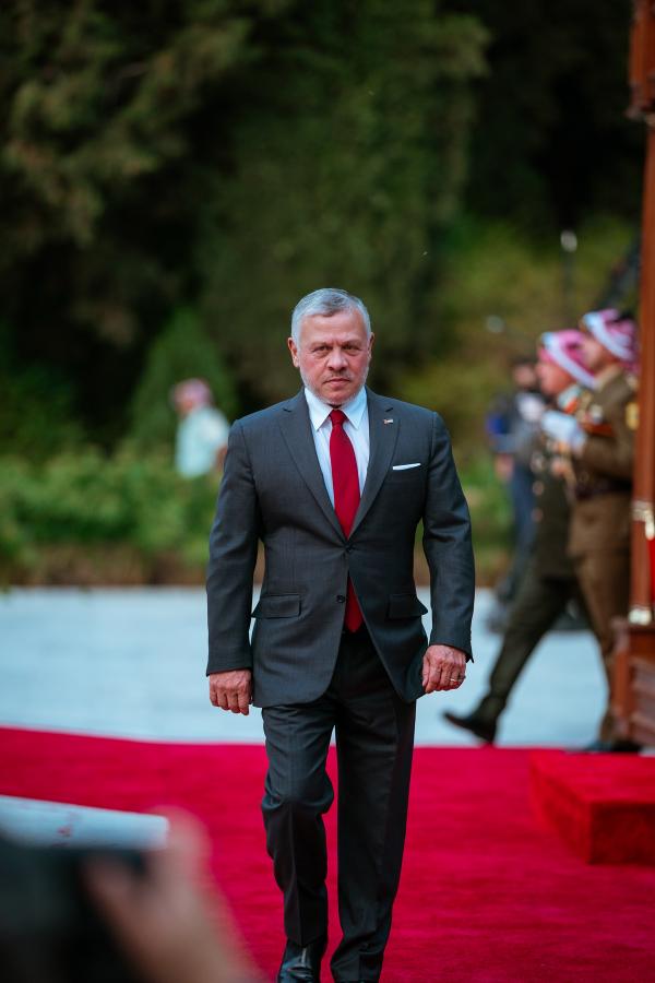 عمان جو - وصل جلالة الملك عبدالله الثاني، يرافقه سمو الأمير الحسين بن عبدالله الثاني، ولي العهد، إلى مركز الملك الحسين بن طلال للمؤتمرات بمنطقة البحر الميت، لترؤس مؤتمر الاستجابة الإنسانية الطارئة في قطاع غزة.