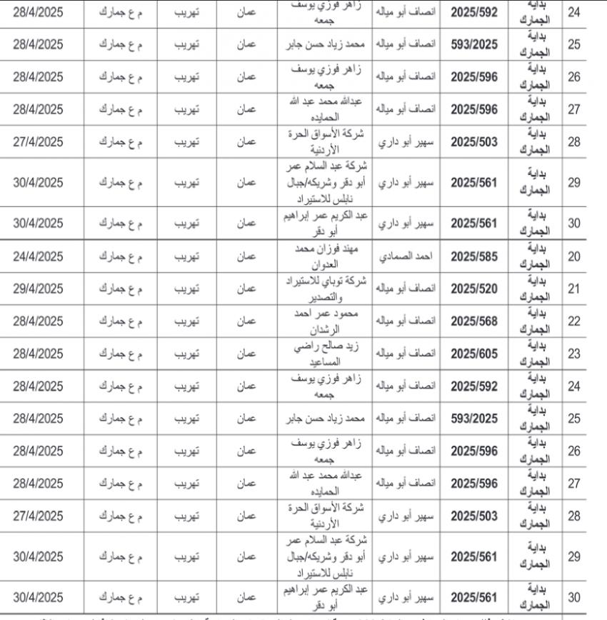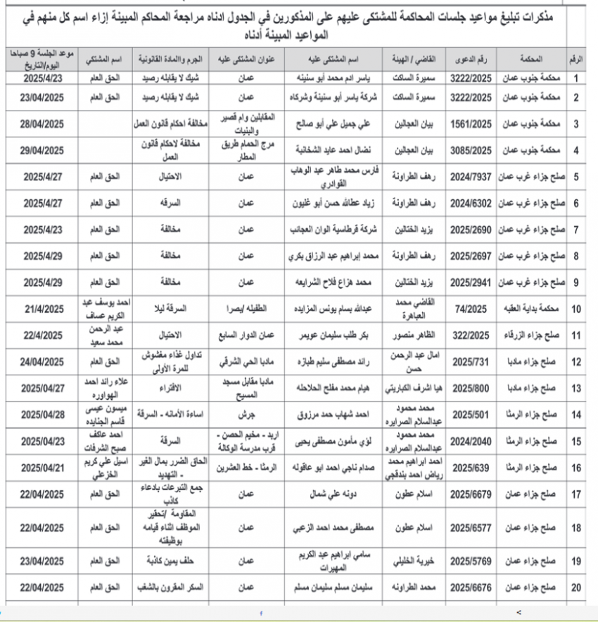 مذكرات تبليغ ومواعيد جلسات محاكمات لأردنيين (أسماء)