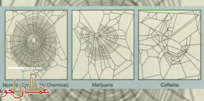 وأبرز الخبراء قدرة المواد المنشطة والمخدرة في القهوة والكافايين والماريخوانا من خلال مجموعة من الصور تبرز اختلاف نسيج عناكب المختبر بعد تزويد أجسادها بهذه المواد.