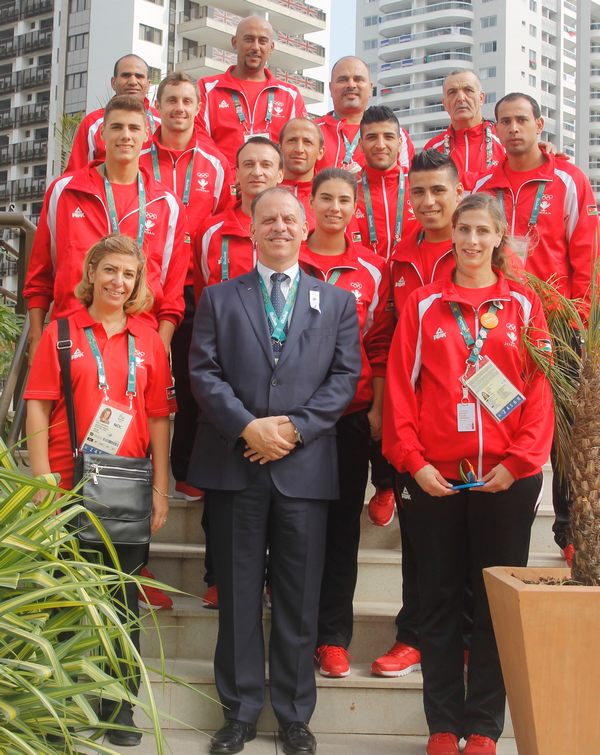 عمان جو - احتفت البعثة الأردنية المشاركة في دورة الألعاب الأولمبية في مدينة ريو البرازيلية، بمراسم رفع العلم الأردني وعزف السلام الملكي الذي أقيم ترحيبا بالبعثة في قرية اللاعبين، وحظي بحضور الأمير فيصل بن الحسين رئيس اللجنة الأولمبية الأردنية.