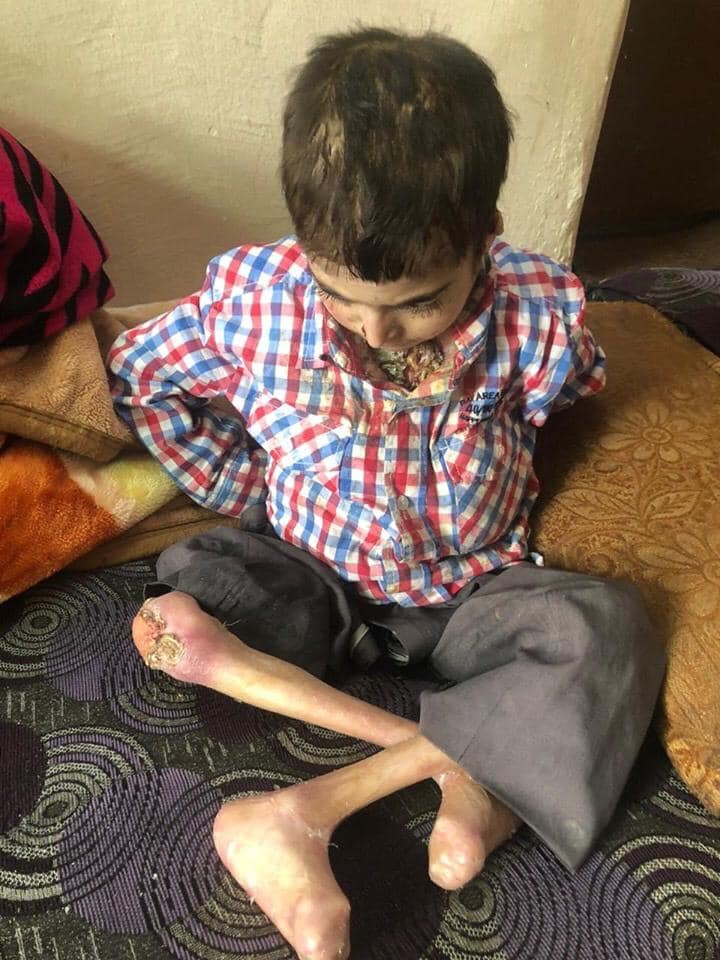 أصيب بتقرحات وإلتهبات جلدية لدرجة أصبحت ملابسه تلتصق بجسده عبد الرحمن طفل أردني يبلغ من العمر 13 عاما يعاني من تقرحات جلدية شديدة لدرجة أنه اذا اراد أن ينزع ملابسه ينزع بعض جلده معها راجع عبد الرحمن مشفى في عمان لكن لم يستفد من العلاج.
