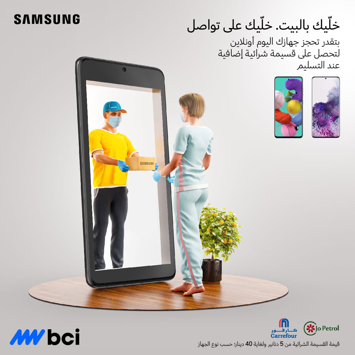 حيث ستقوم شركة BCI من خلال هذه الحملة والتي بدأت في 30 آذار ومستمرة حتى الآن بإهداء عملائها هدايا قيمة، وهي عبارة عن قسائم شرائية من كارفور وجوبترول عند شراء هواتف سامسونج الكترونيكس باستخدام موقعها الالكتروني www.bci-store.com، وتشمل قائمة الهواتف : A20s, A30s, A51, M31, A71, Note 10 lite, S20+، لتخدم الاحتياجات المختلفة للعملاء، هذا وقد بدأت شركة BCI بتوصيل الهواتف للعملاء فور حصولها على التصريح الخاص مع التزام الشركة بقوانين العمل والسلامة المعمول بها حالياً.
