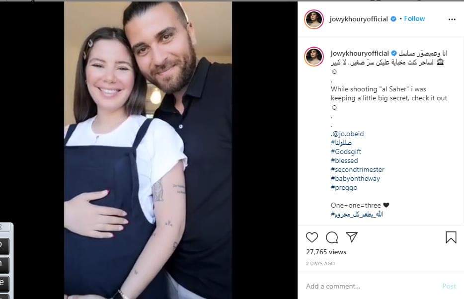 عمان جو _ نشرت الممثلة اللبنانية جوي خوري فيديو لها برفقة زوجها جو عبيد، وكشفا معاً أن جوي تنتظر مولودهما الأول وهي في الثلث الثاني من الحمل.