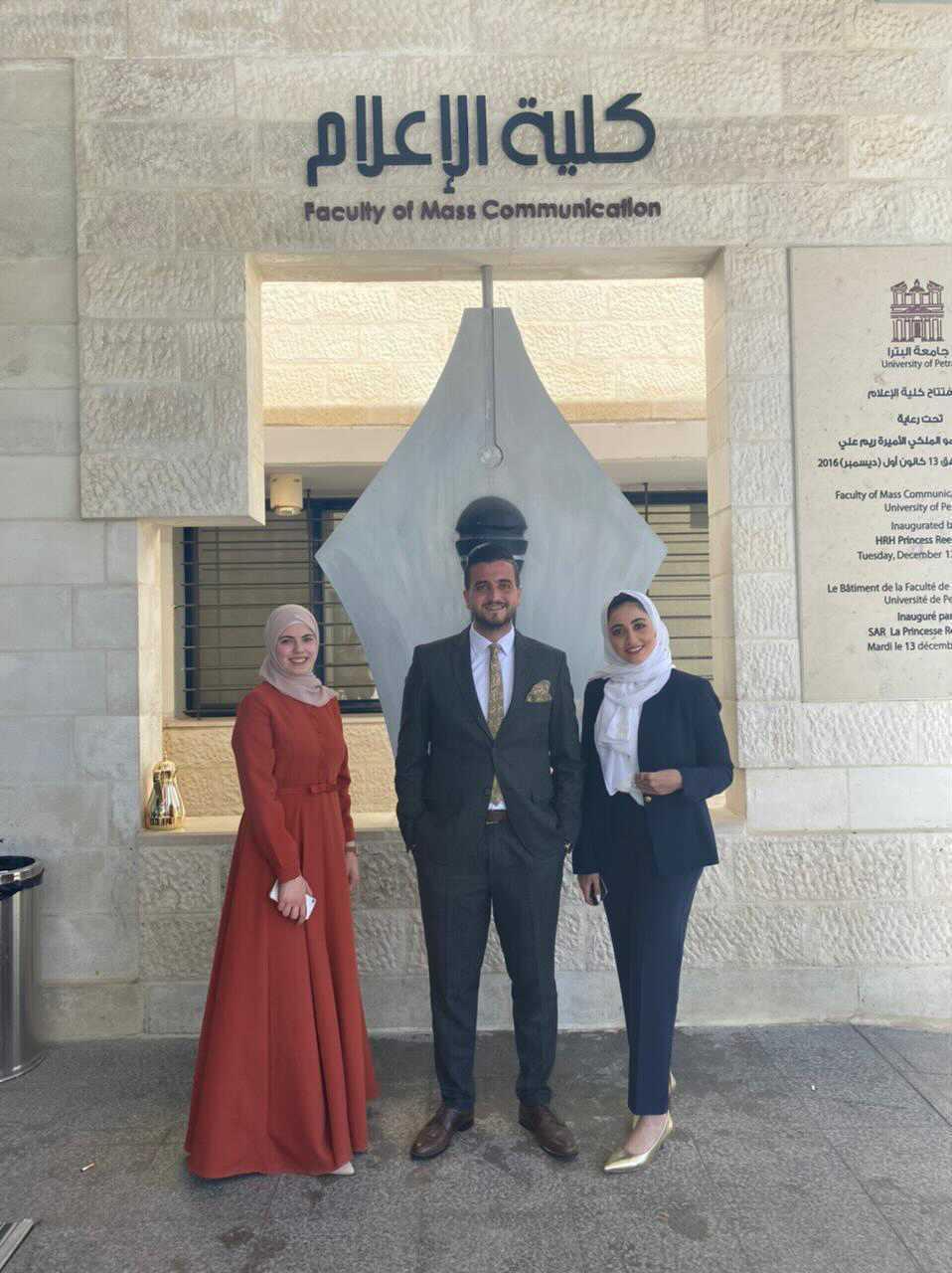 وناقشهم في مشروعهم كل من الدكتور أيمن مسنات والدكتور تيسير مشارقة والدكتور محمد بني دومي لينهوا به متطلبات تخرجهم من كلية الاعلام في جامعة البترا