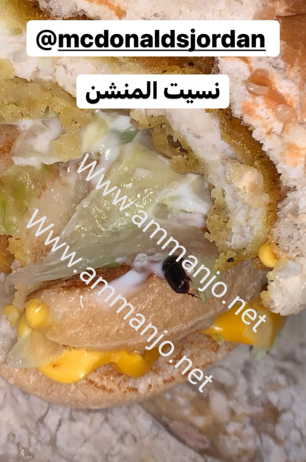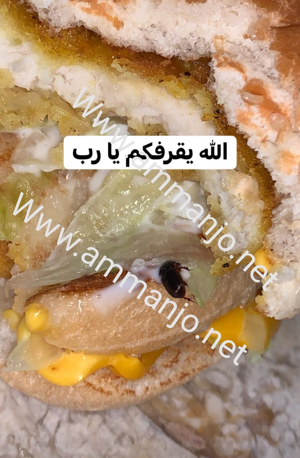 عمان جو - اشتكى مواطن من وجود حشرة داخل وجبة كان قد قام بشرائها من احدى فروع مطاعم الواجبات السريعة ماكدونالدز المعروفة في المملكة ..