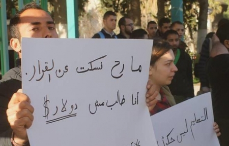 وتتلخص المطالب التي وصوفها بأنها " عادلة " –وفق العريضة- بإلغاء قرار رفع رسوم الموازي والدراسات العليا الذي اتخذته إدارة الجامعة الذي شمل كافة التخصصات وبنسب تراوحت ما بين (30%-210%). وذلك لما أحدثه هذا القرار من حرمان للطلبة المبدعين من إكمال دراستهم العليا.