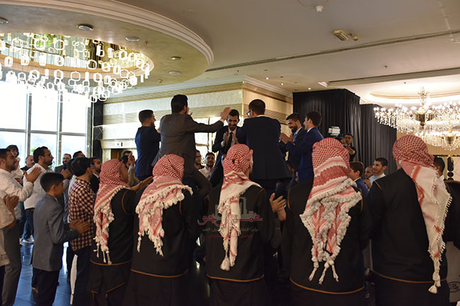 عمان جو - توجه ثلة من أصحاب المعالي والسعادة والعطوفة، وأقرباء وأصدقاء آل العضايلة اليوم الإثنين، للاحتفال بزفاف ابنهم عمر نجل المهندس مراد عبد الحميد العضايلة على رزان كريمة المهندس أنس ابراهيم خريسات.