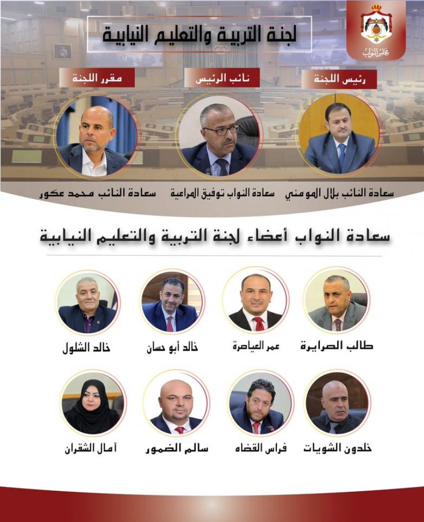 وفاز برئاسة لجنة التربية والتعليم بالانتخاب الدكتور بلال المومني والنائب الدكتور توفيق المراعية نائبًا للرئيس فيما فاز بالتزكية الدكتور محمد عكور مقررًا.