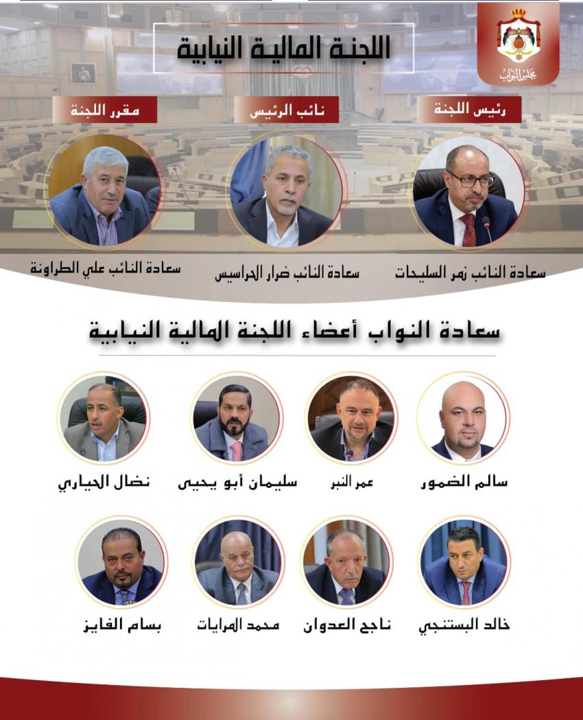 وفاز برئاسة اللجنة المالية بالتزكية النائب الدكتور نمر السليحات والنائب ضرار الحراسيس نائبا للرئيس والنائب علي الطراونة مقررًا.