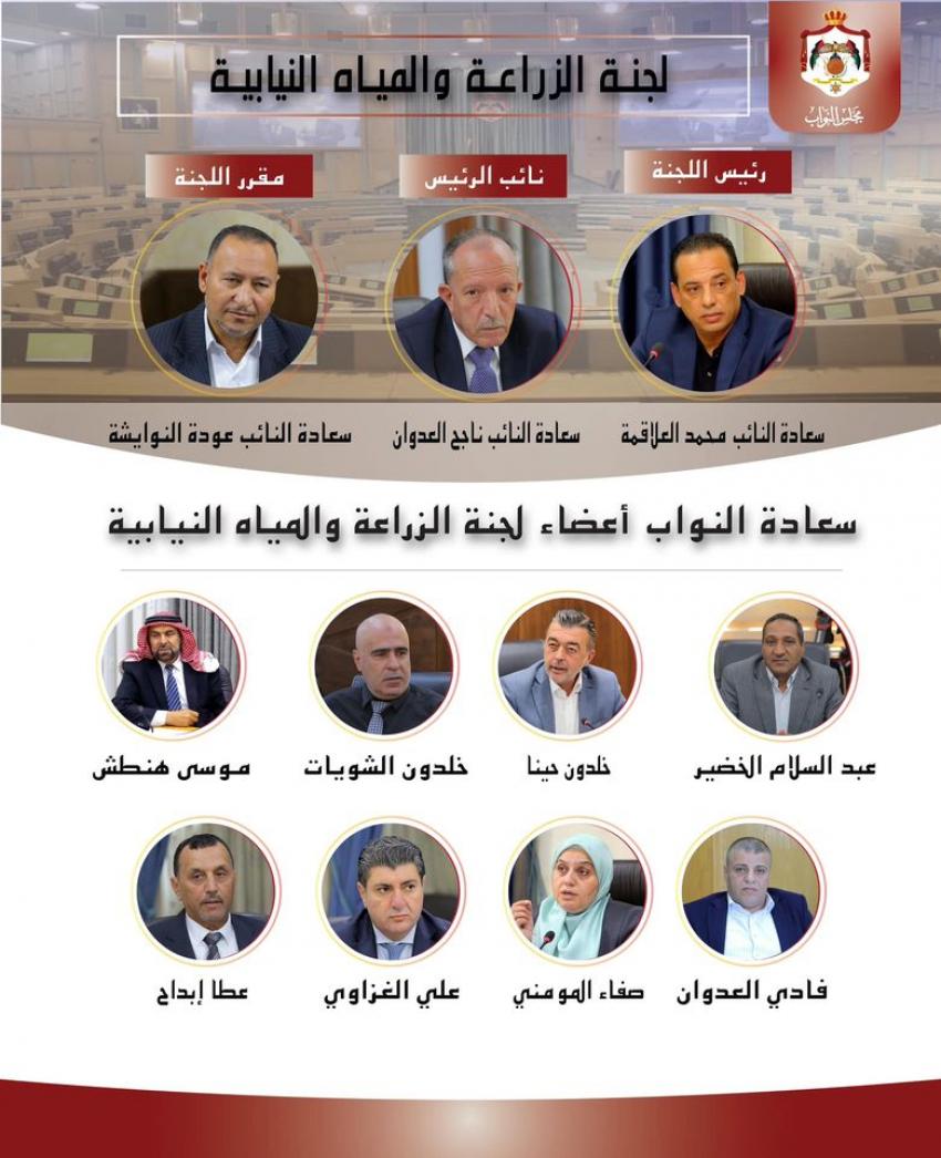 وفي لجنة الزراعة والمياه، فاز برئاستها بالقرعة النائب محمد العلاقمة بعد تساويه بالأصوات مع النائب ناجح العدوان فيما فاز بالتزكية النائب ناجح العدوان نائبا للرئيس والنائب عودة النوايشة مقررا.