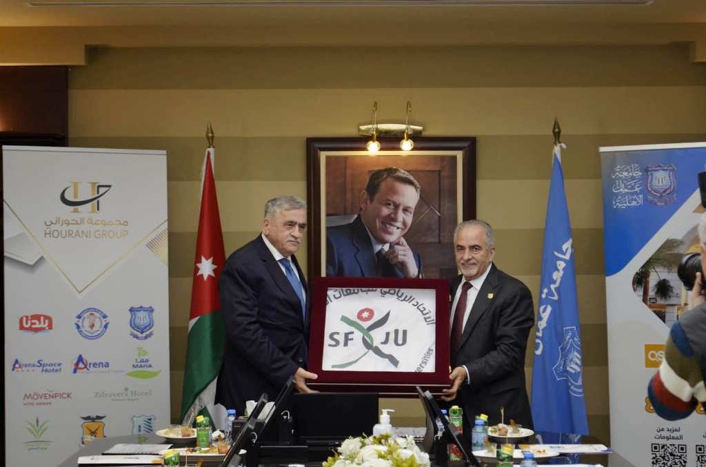 كما أكد حمدان على ثقته بأن الجامعة الأردنية برئاسة معالي الأستاذ الدكتور نذير عبيدات ستسهم في المضي قدماً بالارتقاء في أعمال ونشاطات الاتحاد لما تحتضنه من كوادر إدارية وفنية على درجة عالية من الكفاءة، مشيراً إلى الاستعداد التام لجامعة عمان الاهلية لتقديم كافة أشكال الدعم واستكمال المسيرة الناجحة والنقلة النوعية للاتحاد الرياضي للجامعات الأردنية في أعماله خلال الآونة الأخيرة.