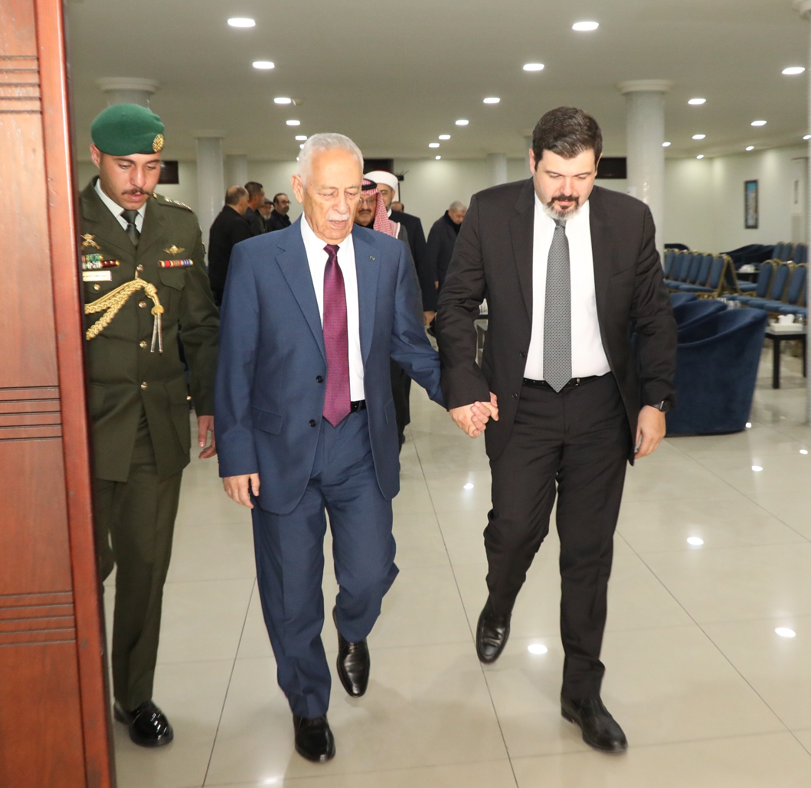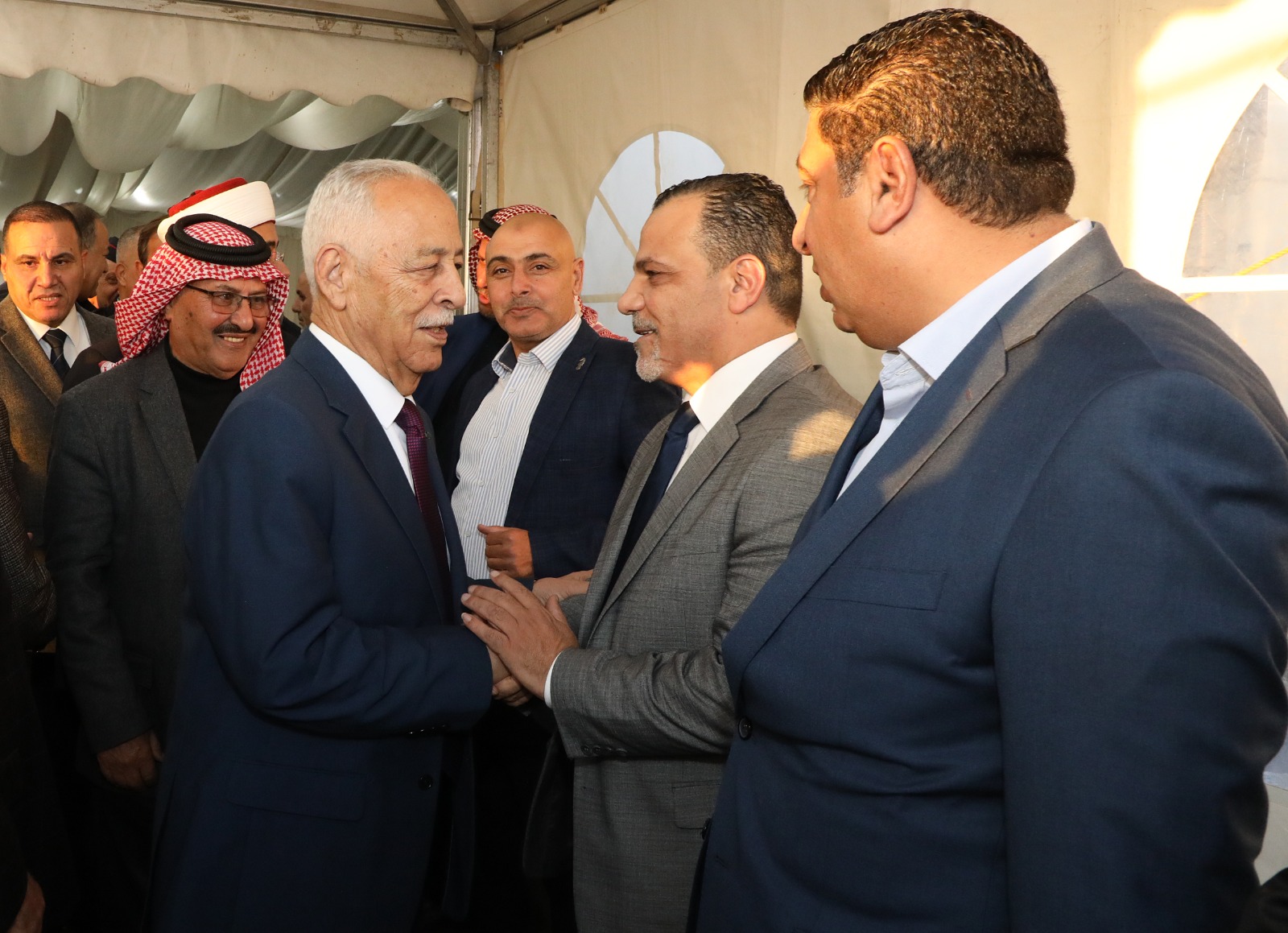 عمان جو - مندوبا عن جلالة الملك عبدالله الثاني ابن الحسين المعظم وسمو ولي العهد المعظم قدم معالي رئيس الديوان الملكي الهاشمي يوسف حسن العيسوي واجب العزاء اليوم الاحد الموافق 3-12-2023 بالمرحوم هشام احمد الطراونة ( أبو احمد) شقيق دولة الدكتور المرحوم فايز الطراونة.