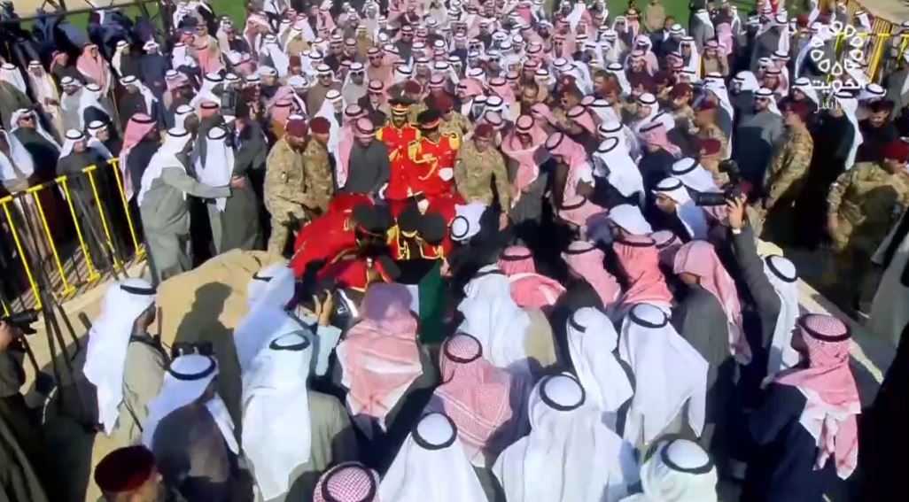 عمان جو - شيع الكويتيون، الأحد، جثمان الشيخ الأمير نواف الأحمد الصباح أمير البلاد الراحل، إلى مثواه الأخير.