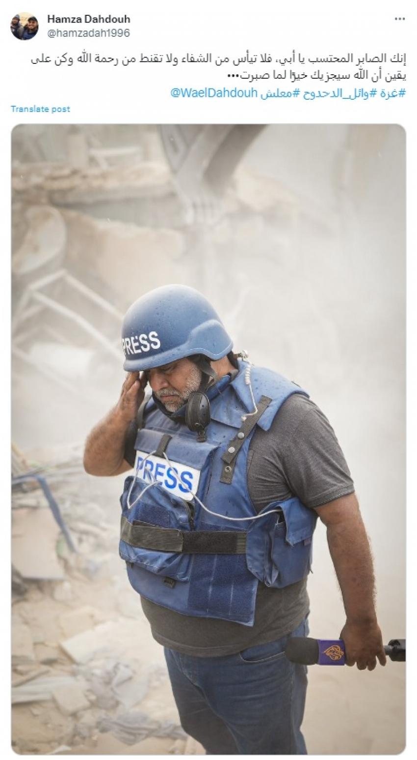 تداول ناشطون عبر مواقع التواصل الاجتماعي اخر تغريدة للشهيد الصحفي حمزة الدحدوح نجل مراسل قناة الجزيرة في قطاع غزة الزميل وائل الدحدوح.