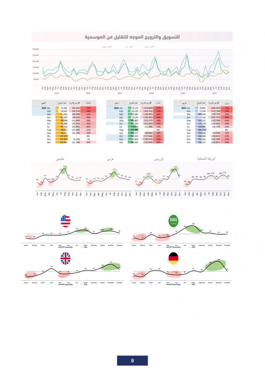 وبحسب التقرير "على الرغم من هذه الانخفاضات إلا أن أرقام أعداد السياح والإيرادات الإجمالية تجاوزت مستهدفات وزارة السياحة والآثار للربع الأول (بنسبة 10.5 بالمئة لأعداد السياح و2.3 بالمئة للدخل السياحي)، ومستهدفات إنجازات الوزارة من الربع الأول من عام 2019، سنة القياس العالمية لأداء القطاع.