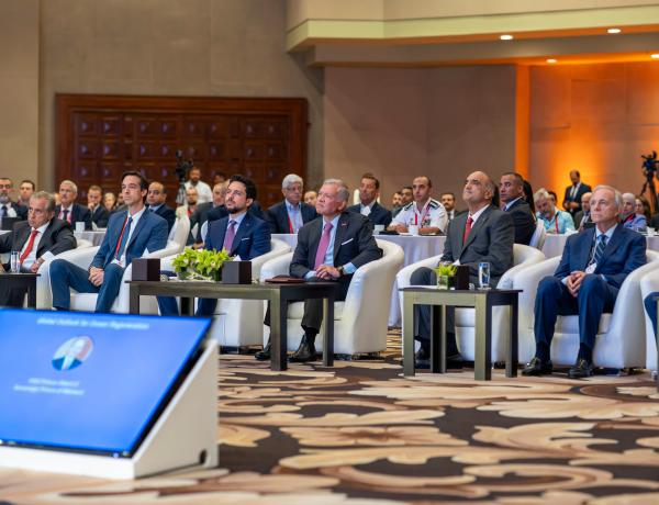 عمان جو-حضر جلالة الملك عبدالله الثاني وسمو الأمير الحسين بن عبدالله الثاني، ولي العهد، اليوم الاربعاء، الجلسة الرئيسية للقمة الإقليمية للمحيطات، التي عقدت في مركز الملك الحسين بن طلال للمؤتمرات بمنطقة البحر الميت.