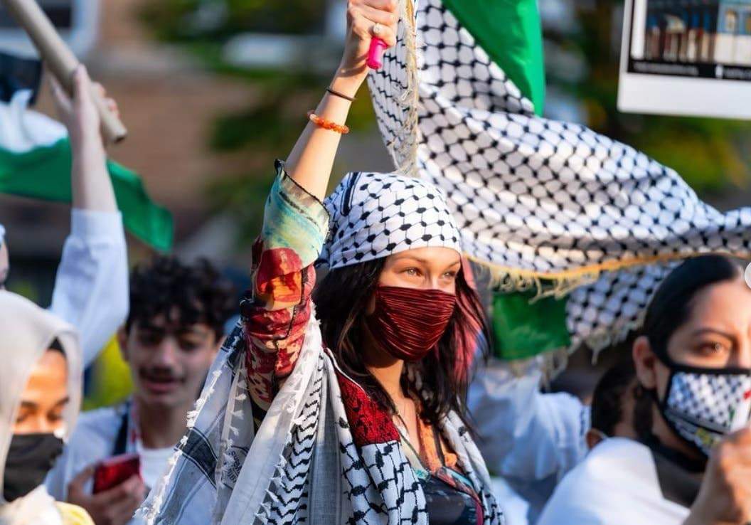 في السياق المتصل، أحدثت عارضة الأزياء الأميركية من أصل فلسطيني بيلا حديد ضجةً كبيرة، بعد ظهورها بفستان مستوحى بالكامل من الكوفية في مدينة كان الفرنسية، كتعبير للتضامن مع القضية الفلسطينية. وأرسلت بيلا، والتي لطالما أعربت عن دعمها لوطنها الأم، رسالة تضامن جديدة أثناء خروجها من الفندق الذي تقيم فيه، في مدينة كان الفرنسية، من خلال فستانها الذي تميز بلونيه الأبيض والأحمر، بعد أن اكتسبت الكوفية شعبية كبيرة بين النشطاء الداعمين للقضية الفلسطينية حول العالم منذ اندلاع أحداث السابع من أكتوبر، إذ بات ارتداؤها رمزًا للتضامن مع الفلسطينيين في حربهم مع اسرائيل.