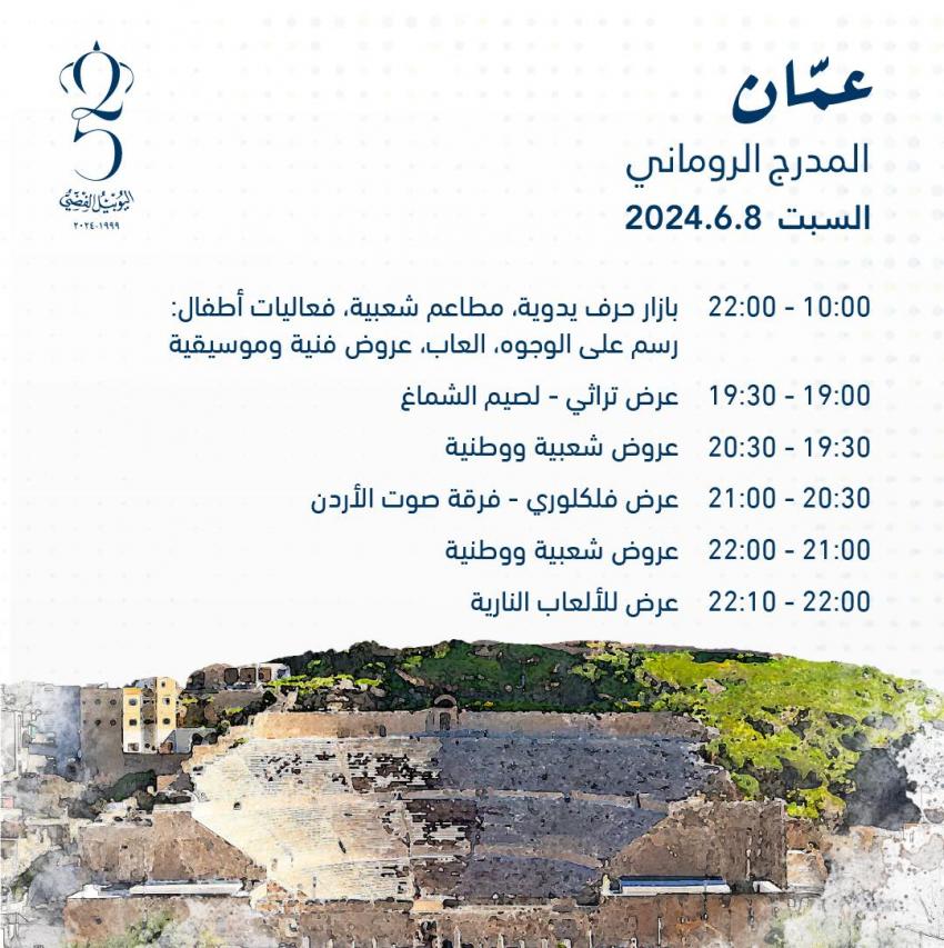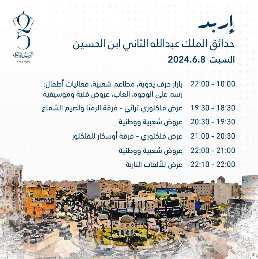 تتواصل الفعاليات والأنشطة الاحتفالية بمناسبة اليوبيل الفضي ويوم الجلوس الملكي في جميع محافظات المملكة.
