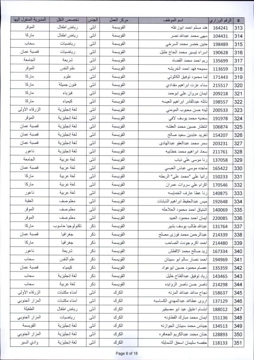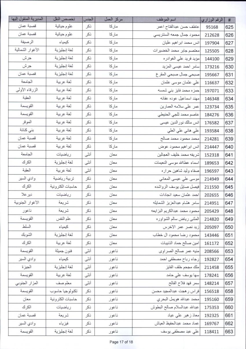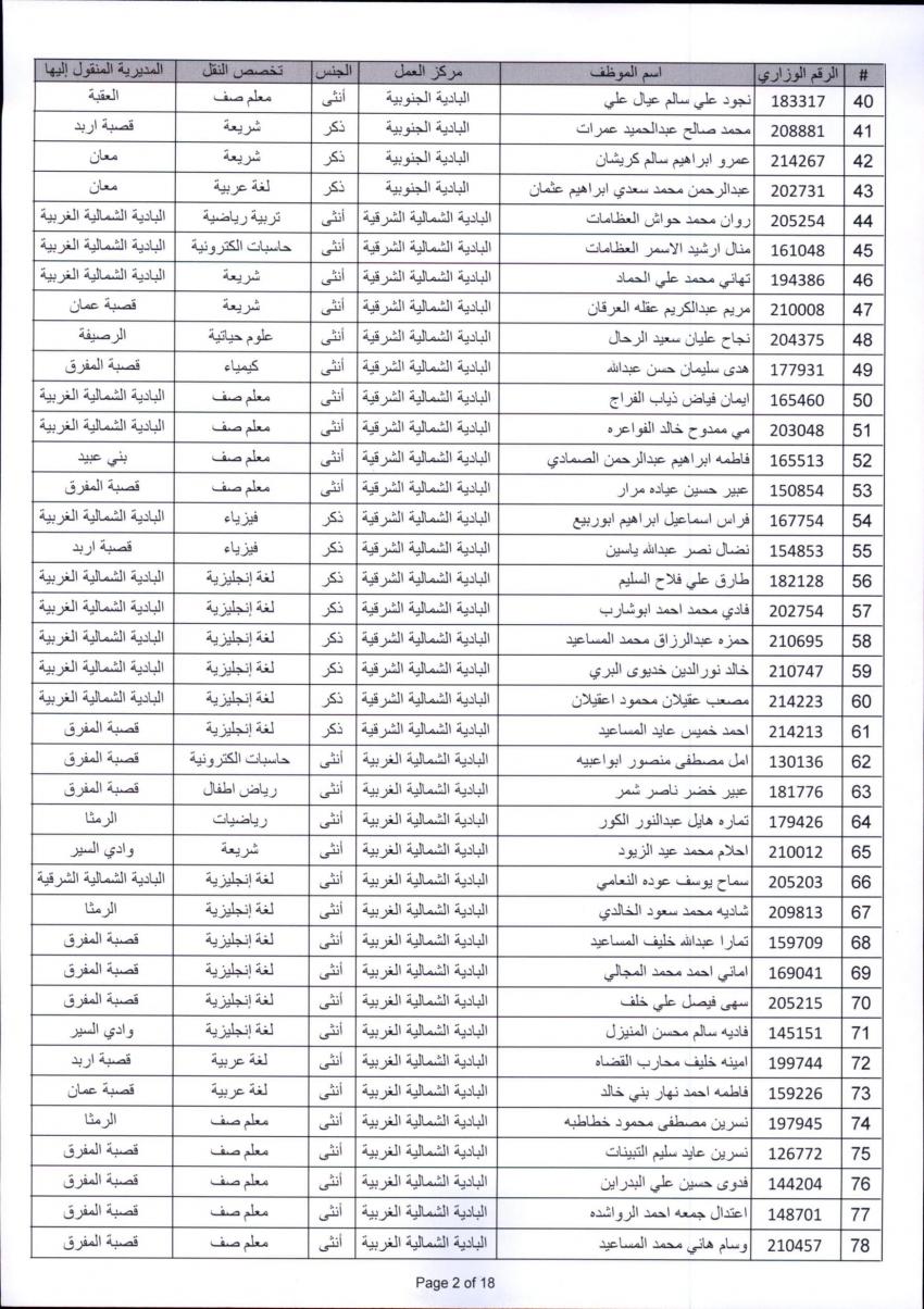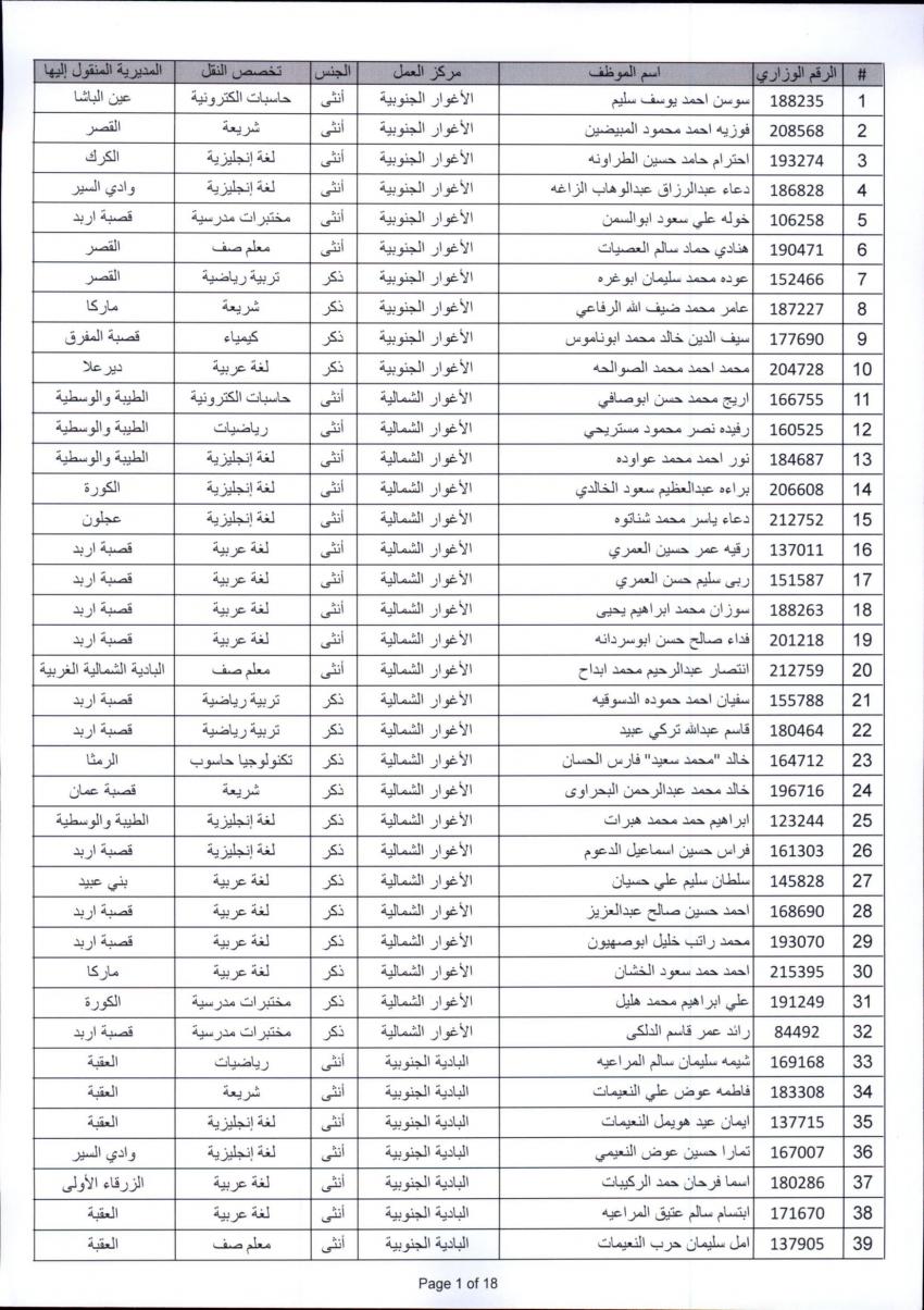 وتاليا أسماء المعلمين والمعلمات المنقولين: