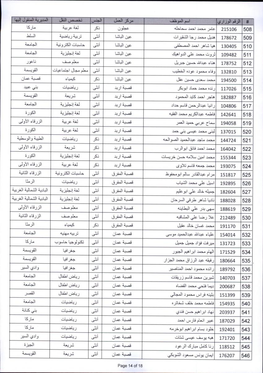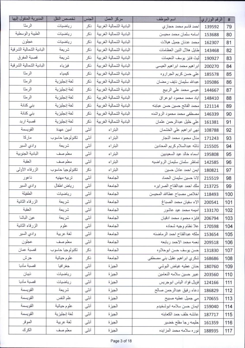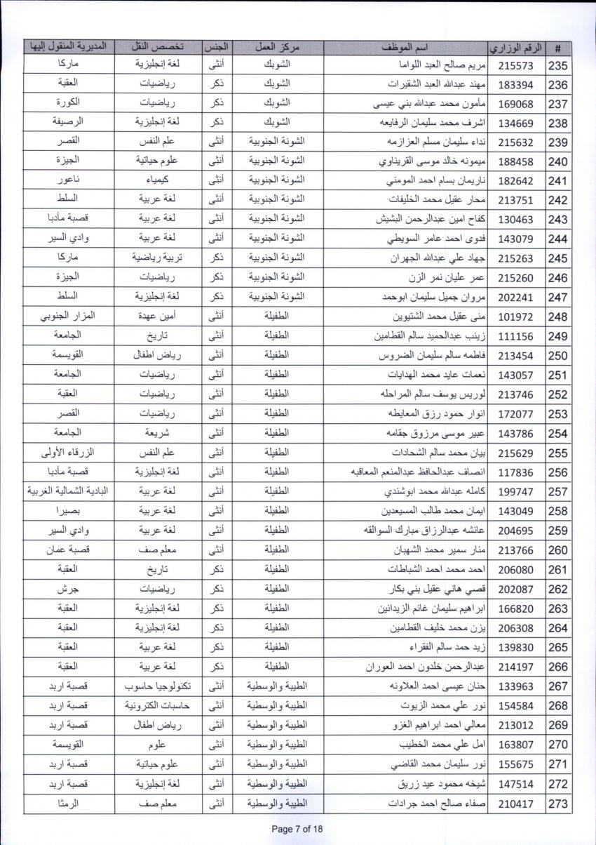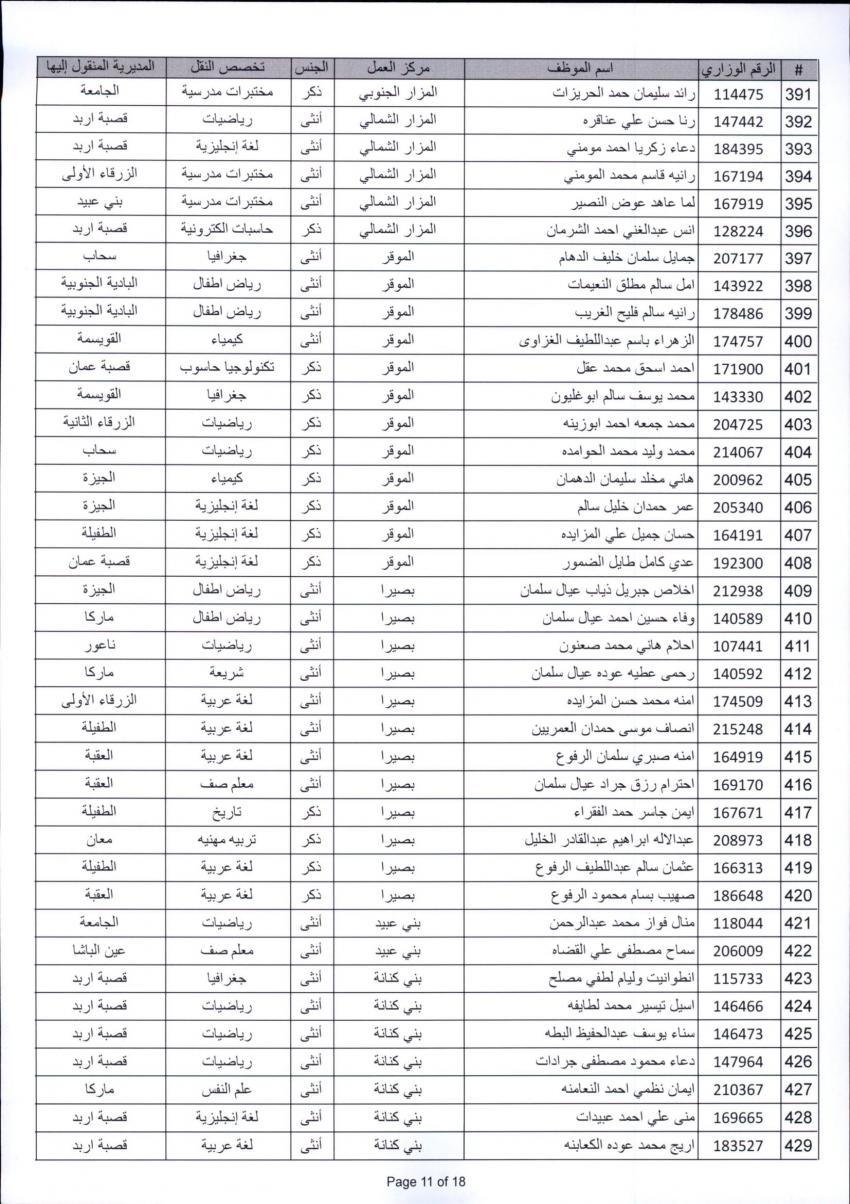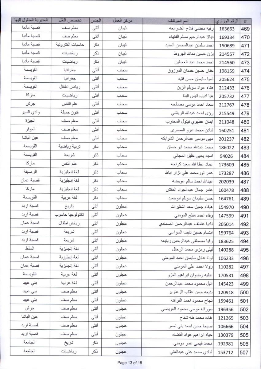 وتاليا أسماء المعلمين والمعلمات المنقولين: