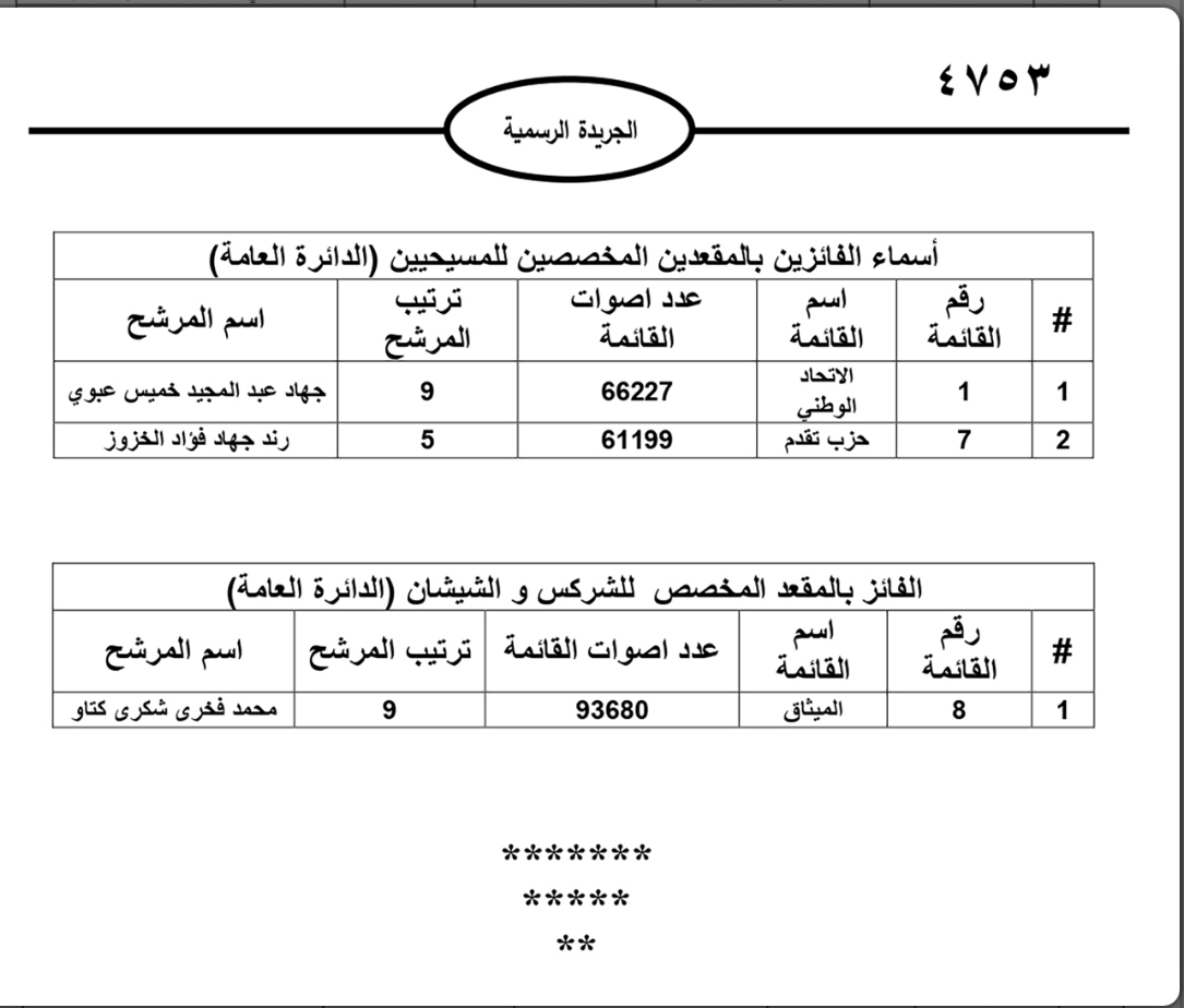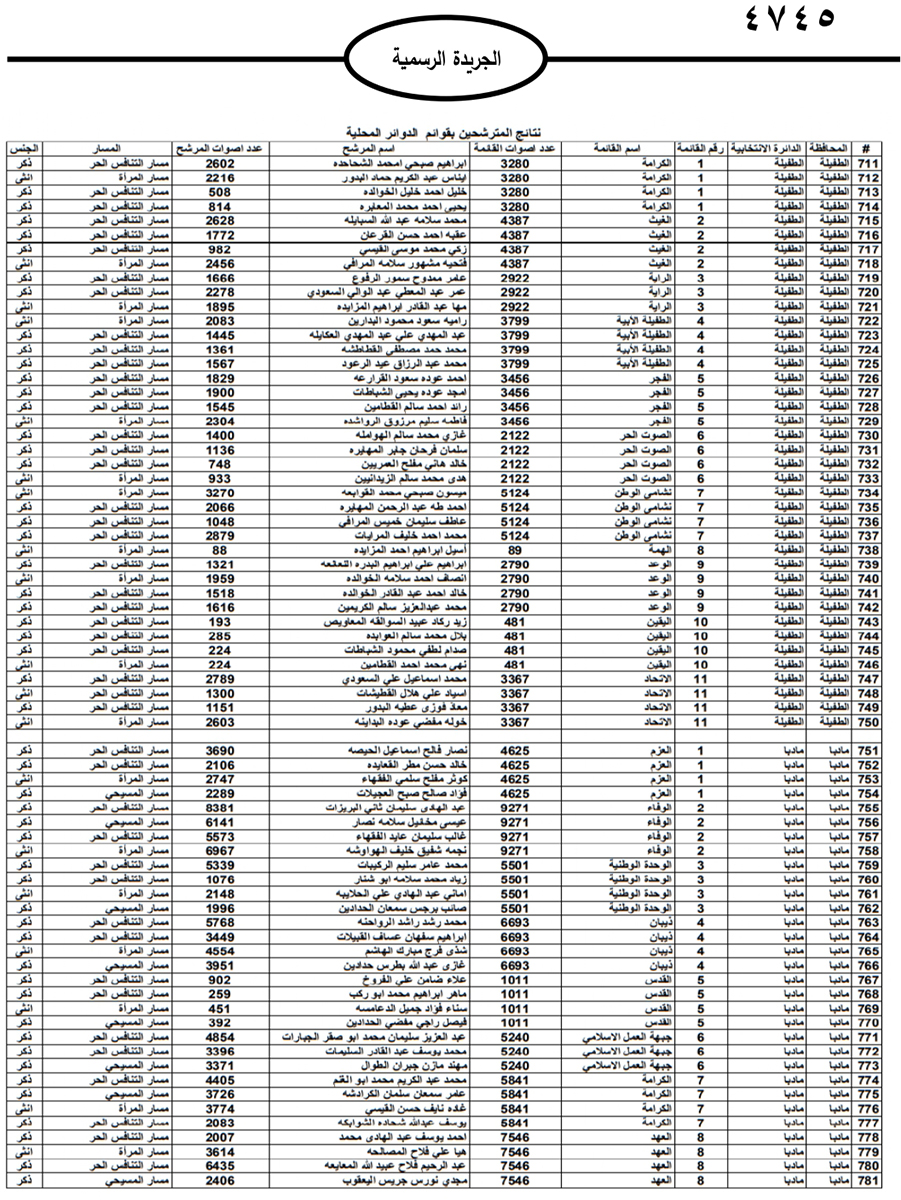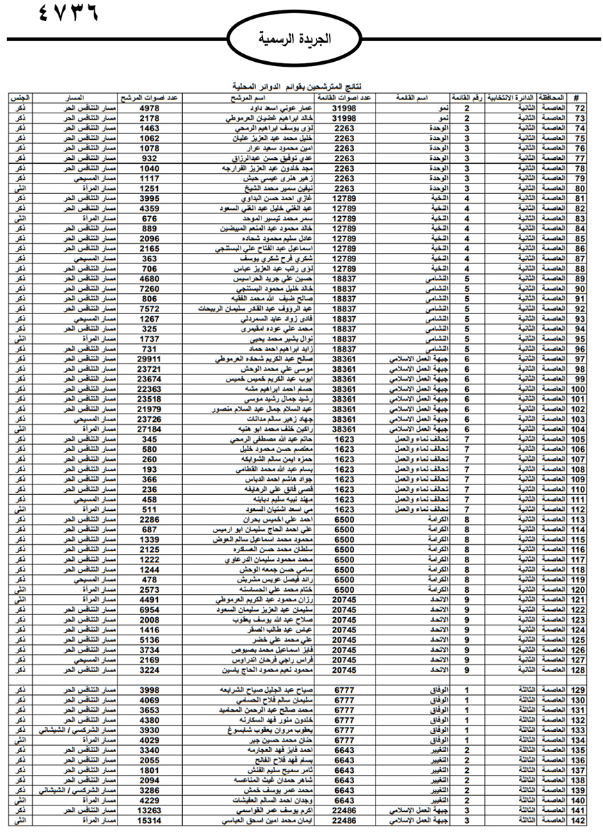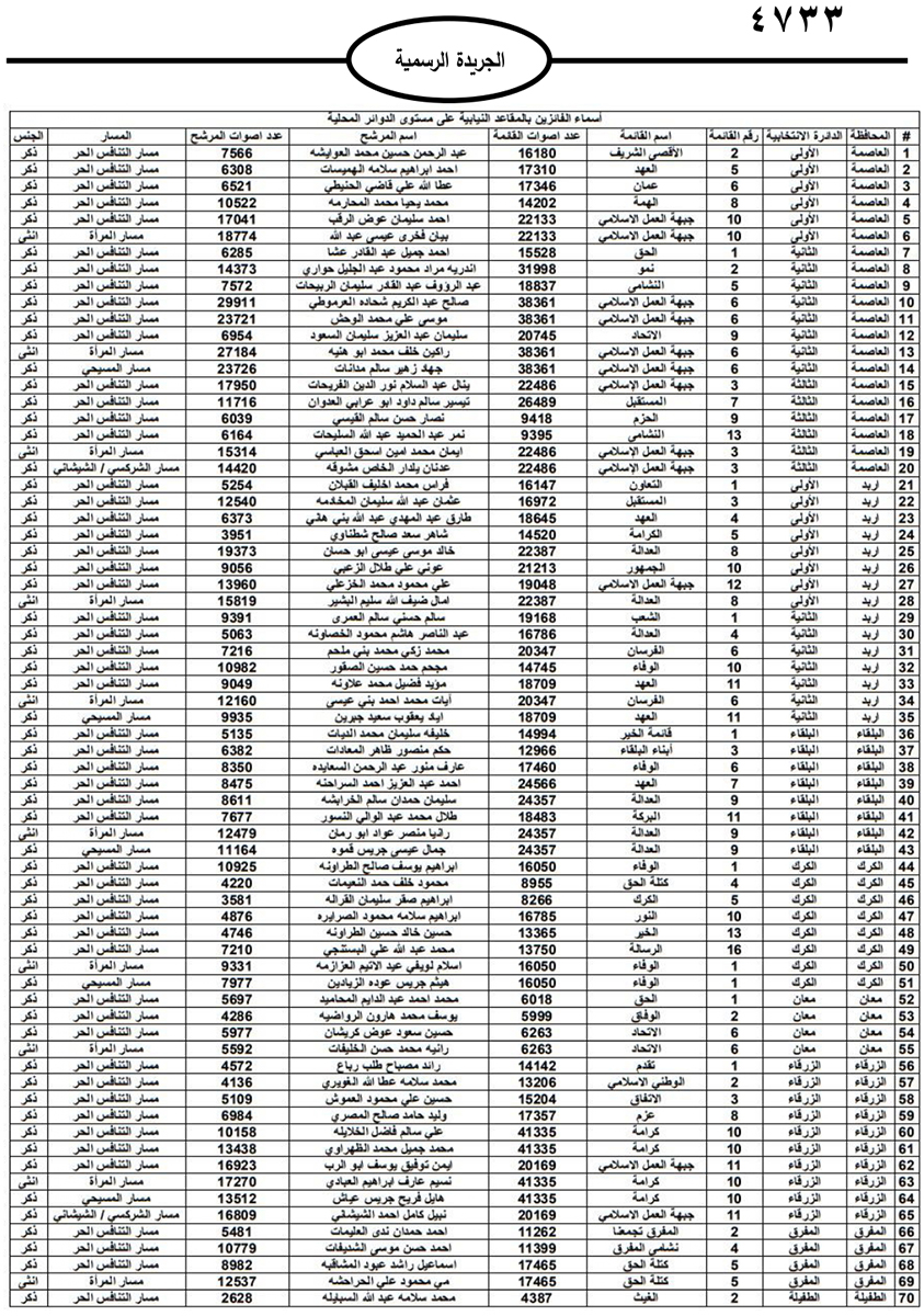 نشرت الحكومة في الجريدة الرسمية نتائج الانتخابات النيابية النهائية وأسماء اعضاء مجلس النواب العشرين للعام 2024.