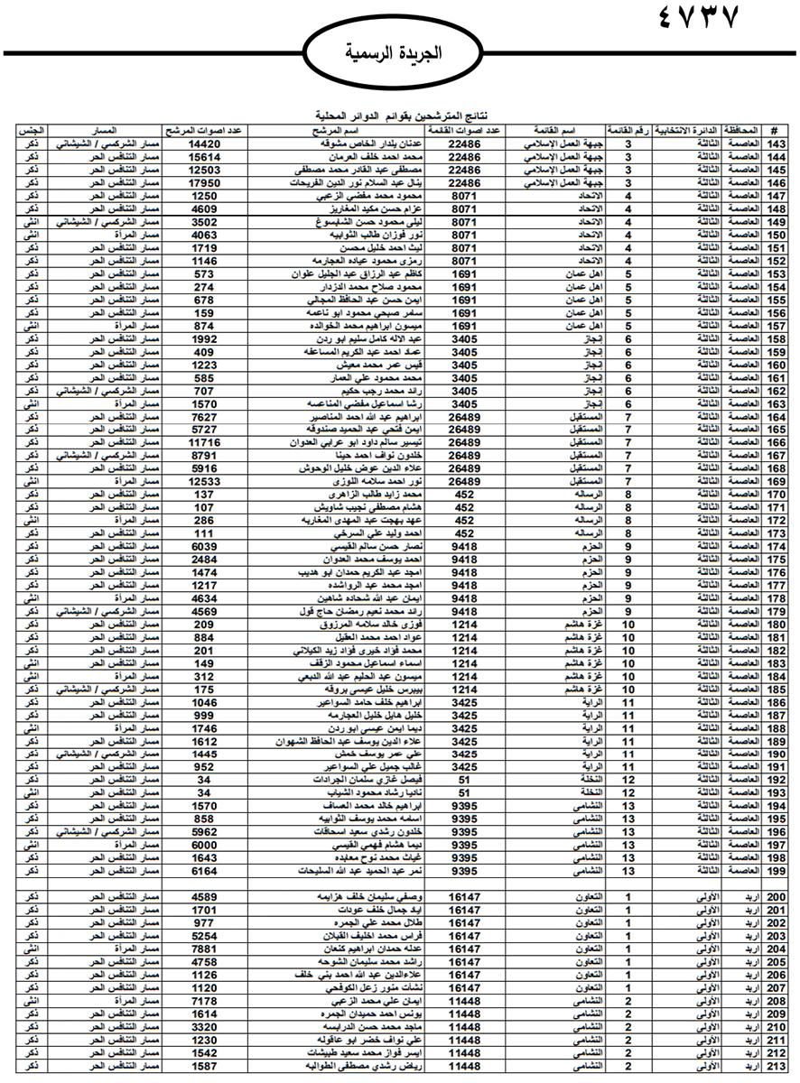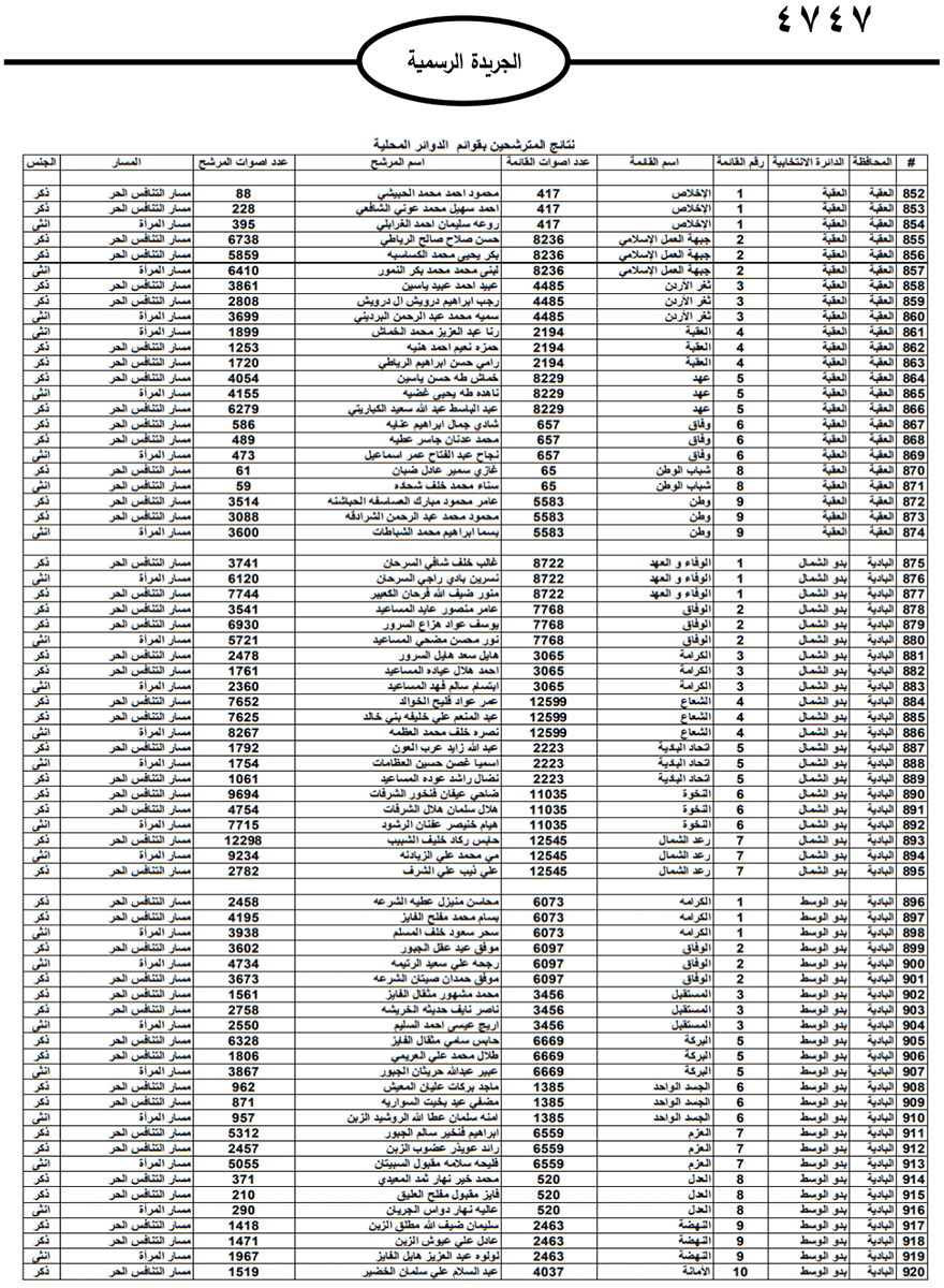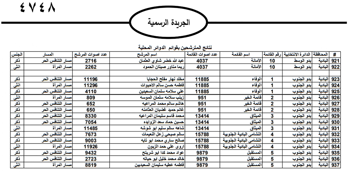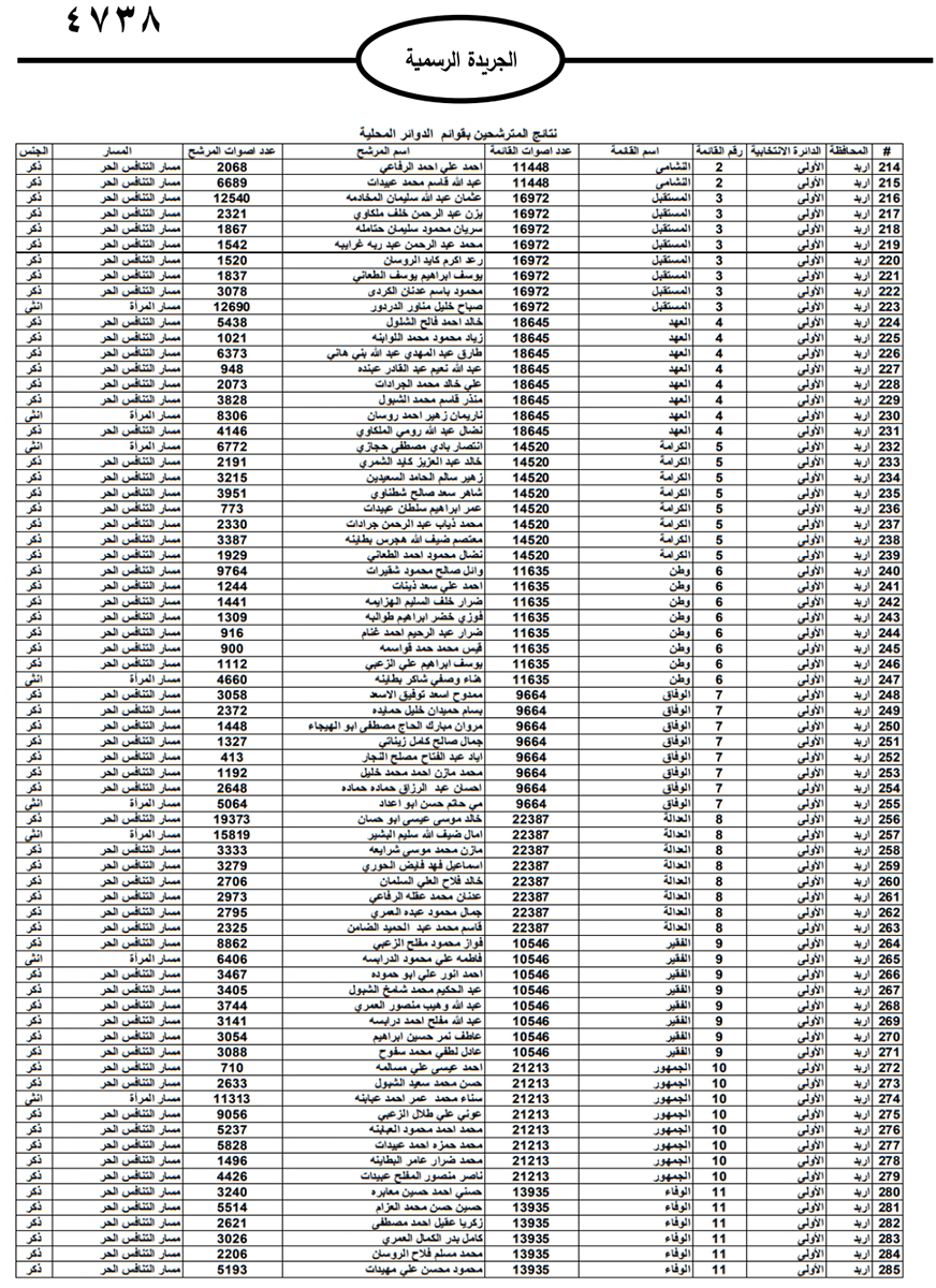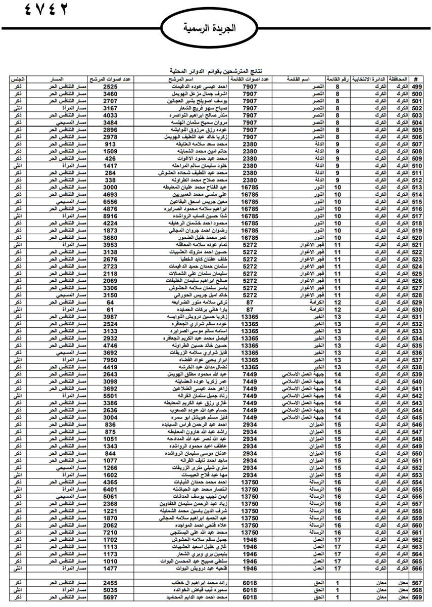 نشرت الحكومة في الجريدة الرسمية نتائج الانتخابات النيابية النهائية وأسماء اعضاء مجلس النواب العشرين للعام 2024.