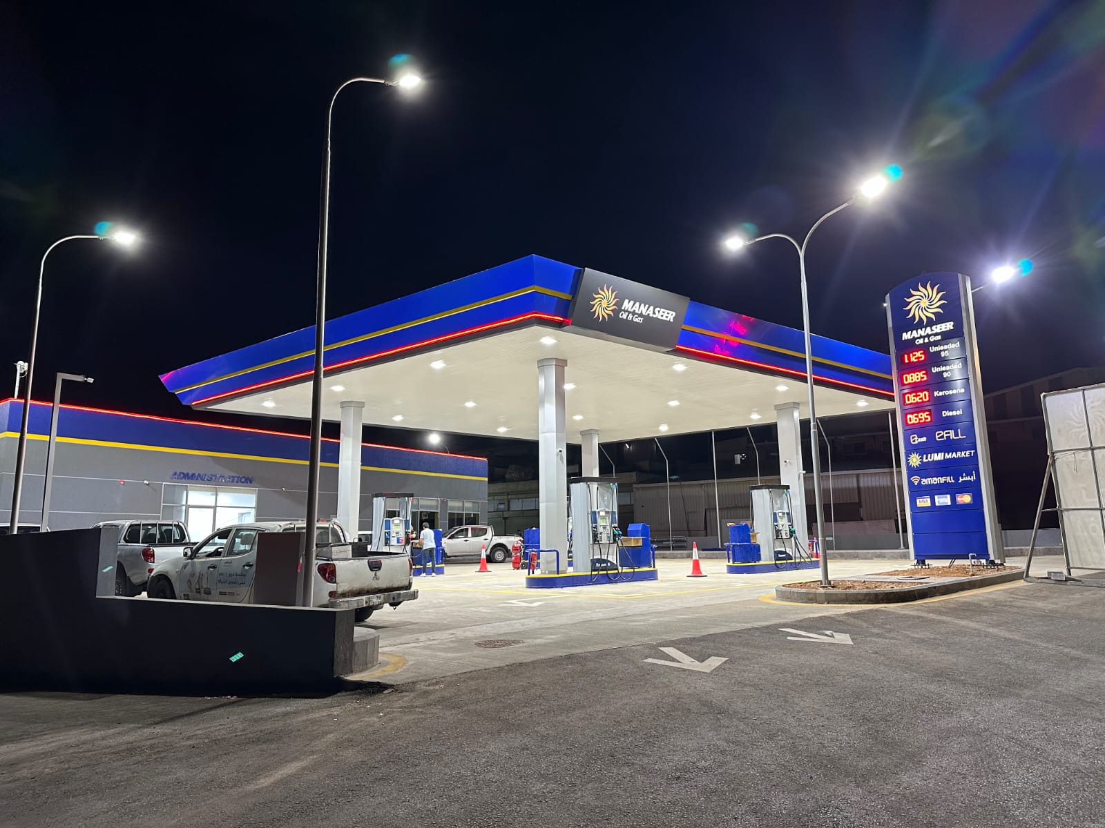 شركة المناصير للزيوت والمحروقات من أوائل الشركات الرائدة محلياً في بناء وتشغيل سلسلة من محطات الوقود حيث تم تشغيل أولى محطاتها عام 2001 بشكل جذاب ومميز وبمواصفات عالمية تضاهي مثيلاتها في الدول المتقدمة، وحرصت الشركة منذ البداية على إستخدام أحدث التقنيات التكنولوجية لخدمة زبائنها وروادها من تقديم خدمات الدفع بإستخدام البطاقات الائتمانية للعميل وتقديم أفضل حلول إعادة التعبئة مثل البطاقات الالكترونية الخاصة بشركة المناصير المدفوعة مسبقاً eCash وبطاقة إعادة التعبئة الالكترونية من المناصير الـ eFill ،وأيضاً الخدمة الأكثر تطوراً بالمملكة وهي Aman Fill والتي تعمل على التزود بالوقود من خلال خاصية ترددات الراديو للتعرف على هوية المركبات في المحطات وتعبئة الوقود.