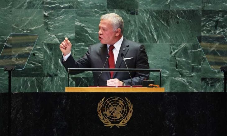 في مناخات الأمم المتحدة، تركز خطاب الملك الأردني فقط في تطورات القضية الفلسطينية وتطورات المعركة ضد أهل قطاع غزة وضد الشعب اللبناني حديثاً، مع أكبر جمل التضامن مع الشعبين الفلسطيني واللبناني في هذه المرحلة، ومع جملة انتقادات صلبة وشرسة مباشرة تخللتها إيماءات ونظرات حادة، كما تخللها إشارة مباشرة باليد إلى من يمثل حكومة إسرائيل اليمينية وتلاعباتها وعبثها بالمنطقة.
