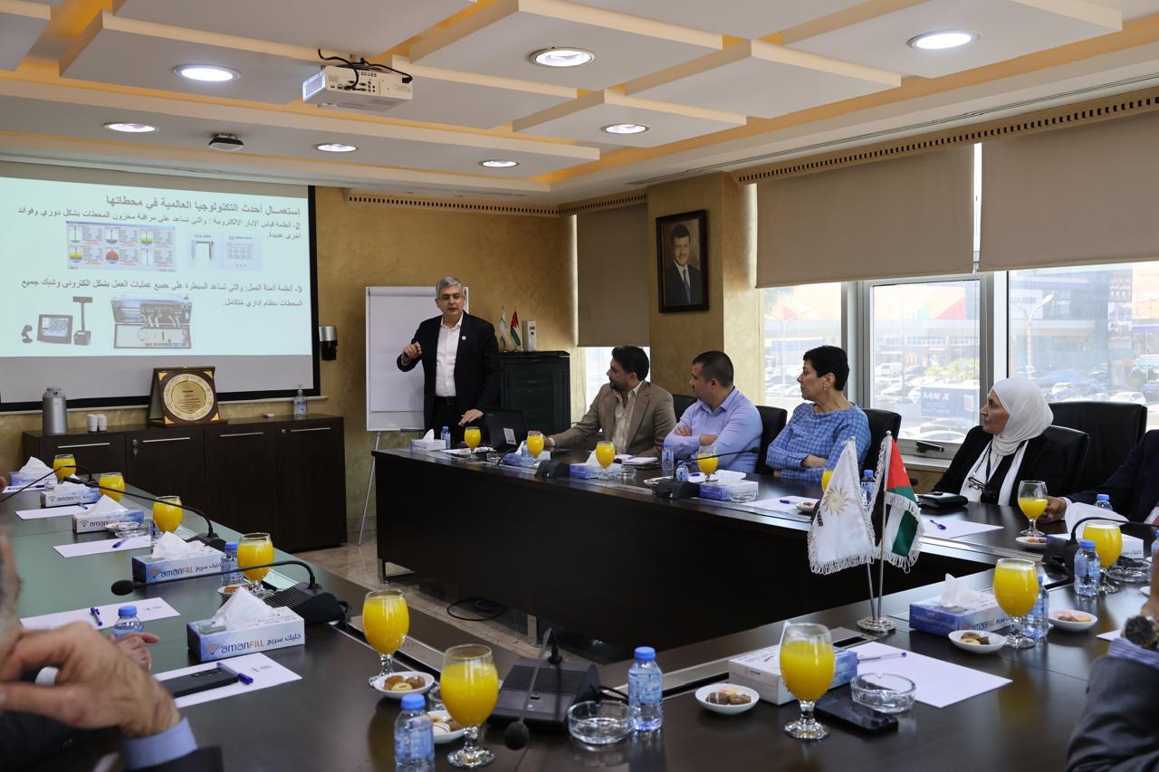 وعرضت الشركة للضيوف أهم المشاريع طورالتنفيذ حالياَ والمشاريع المزمع إقامتها مستقبلاً، ودورها في تعزيز فرص العمل للكفاءات الأردنية ، والمبادرات الاستثمارية المستقبلية التي تشمل بناء مستودعات مشتقات نفطية تسهم في توفير مخزون استراتيجي للمملكة، إلى جانب الاستثمار في محطات شحن المركبات الكهربائية فائقة السرعة، وتوفير محطات متنقلة لتزويد المواطنين بالمشتقات النفطية في المنازل والطرقات العامة والخارجية وفق أحدث التكنولوجيا الصديقة للبيئة.