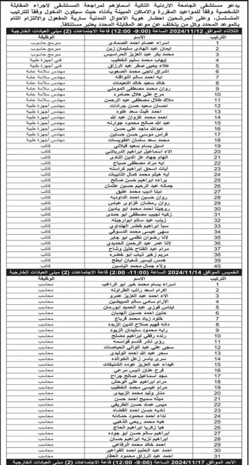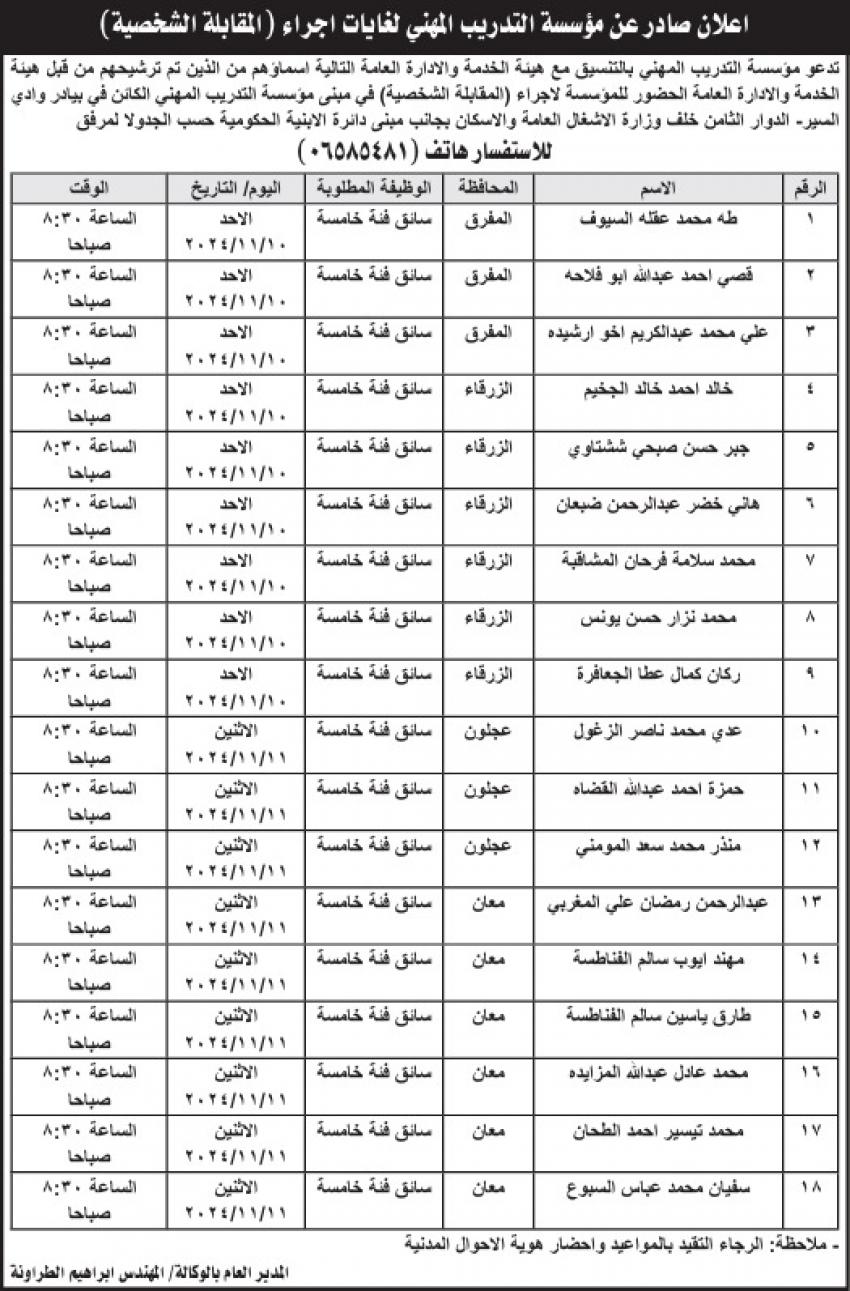 وظائف شاغرة ومدعوون للمقابلة لغايات التعيين (أسماء)