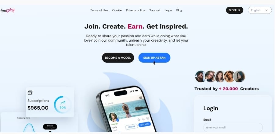 تسلط FanSpicy الضوء على مصداقيتها من خلال عرض مجتمع يضم أكثر من 20000 منشئ محتوى يثقون في المنصة بسبب بيئتها الداعمة وإمكانية كسب المال القوية. من خلال الانضمام، تصبح جزءًا من شبكة كبيرة وموثوقة تلبي احتياجات العارضين والمعجبين.