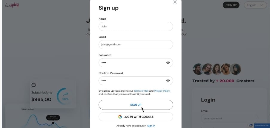 الخطوة 1: بدء التسجيل على FanSpicy
