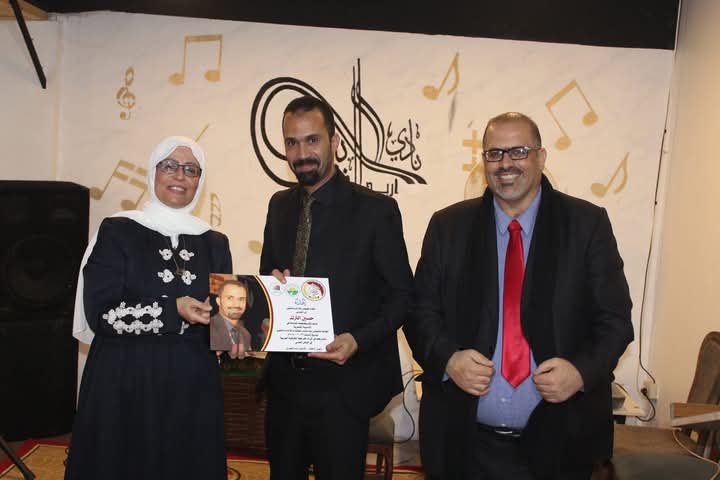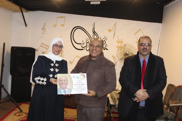 وفي نهاية الحفل قدم رئيس اتحاد القيصر للآداب والفنون ترافقه ضيف شرف الأمسية أ.د رنا طلعت الصمادي الدروع التكريمية للمشاركين .