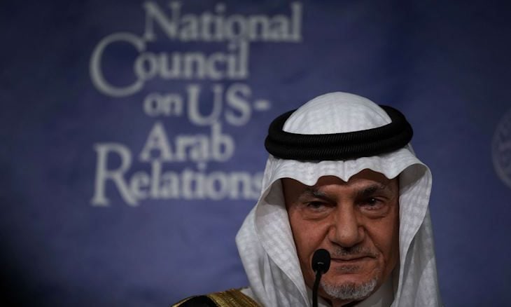 وأكد تركي الفيصل على ضرورة تشكيل تجمع أممي بقيادة السعودية لمواجهة طرح ترامب الذي قال إنه “لن يؤدي إلا إلى مزيد من الصراع وإراقة الدماء”.