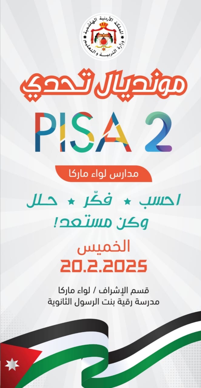 يذكر أن اختبار PISA هو أحد أهم التقييمات العالمية التي تقيس قدرات الطلبة في القراءة والرياضيات والعلوم، ويتيح للدول تقييم جودة أنظمتها التعليمية ومقارنتها عالميًّا. ومن خلال هذه الخطوة الطموحة، يثبت قطاع التعليم الأردني قدرته على مواكبة أحدث المعايير العالمية، وتأهيل الطلبة لتحقيق إنجازات متقدمة على المستوى العالمي