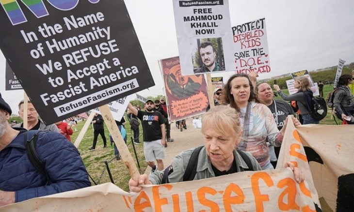 وفي تجمع بساحة الأوبرا في فرانكفورت، طالب أعضاء في منظمة الديمقراطيين في الخارج باستقالة الرئيس الأميركي، ورفعوا لافتات تحمل شعارات "أعيدوا الديمقراطية"، و"ارفعوا أيديكم عن بياناتنا الشخصية"، و"سئم العالم من هرائك يا دونالد، ارحل!".