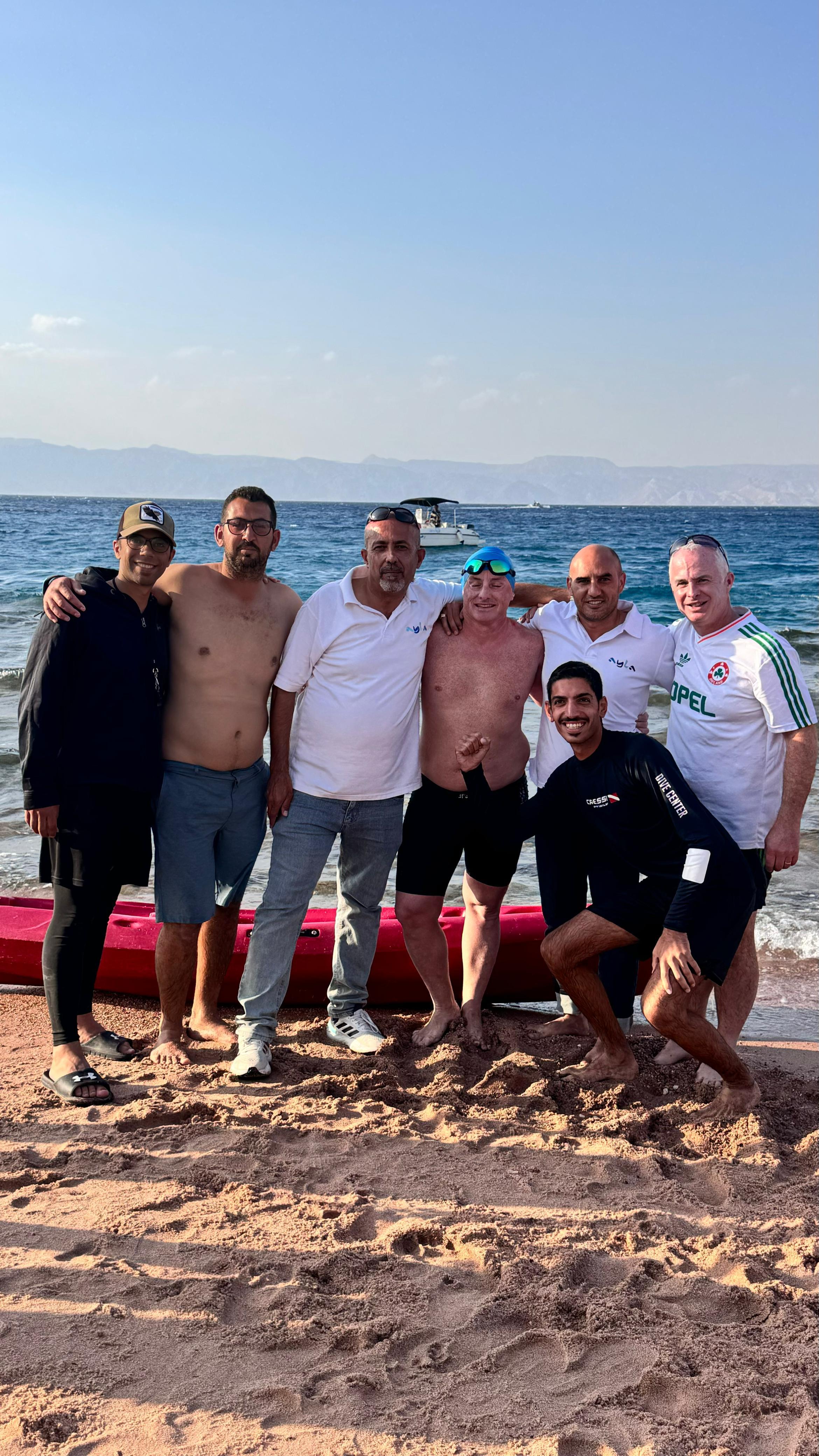 تقدير عالمي للشيف التنفيذي في أيلة توماس بروسنان لسباحته التاريخية على طول ساحل العقبة