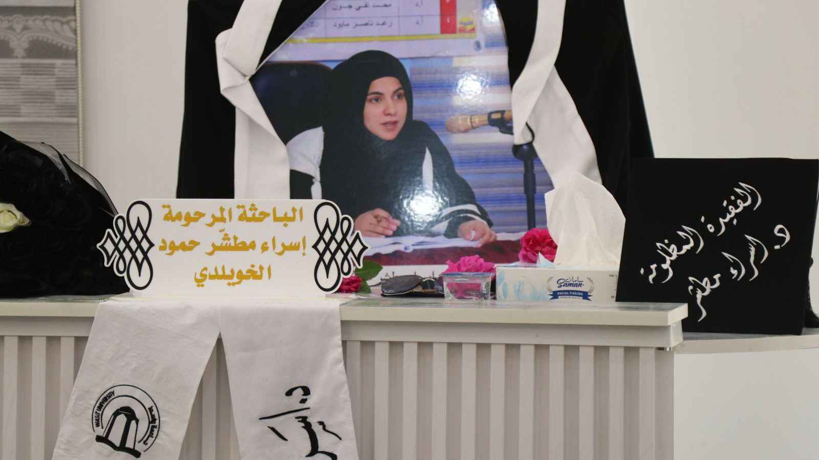 عمان جو-في لفتة إنسانية مؤثرة، نظمت جامعة واسط الحكومية في العراق مناقشة رسالة دكتوراه لإحدى طالباتها في قسم اللغة العربية بكلية التربية للعلوم الإنسانية، وذلك بعد أيام قليلة من وفاتها المأساوية في حادث مرور.