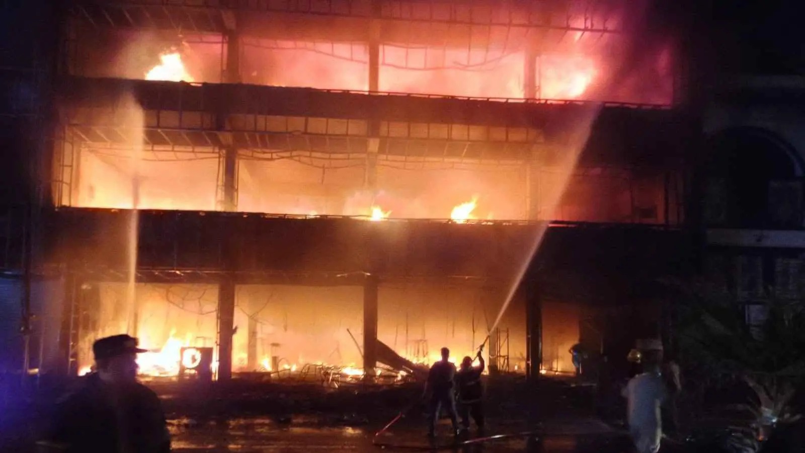شدة الحريق: أظهرت مقاطع فيديو تصاعد ألسنة اللهب من الطوابق المليئة بالأثاث الخشبي والإسفنجي، مما يشير إلى حجم الحريق الهائل.
