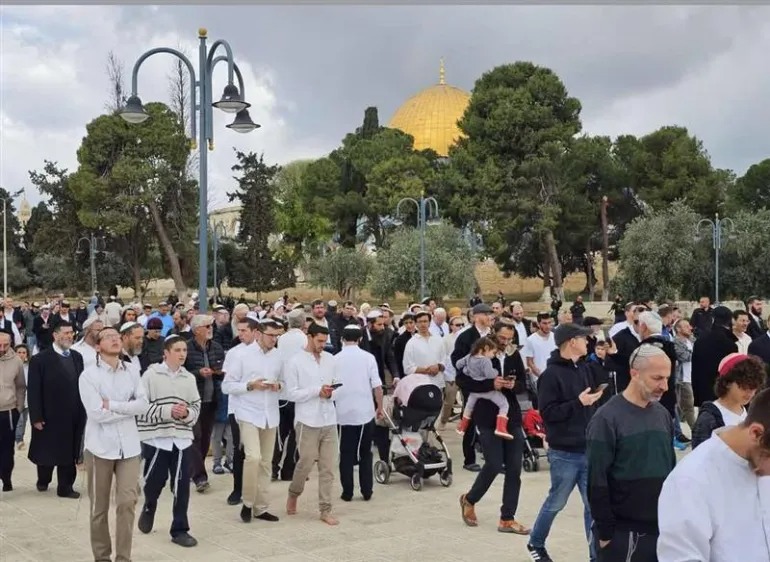 أعداد كبيرة من المستوطنين خلال اقتحام عيد الفصح اليهودي، المسجد الأقصى، القدس، أبريل 2025، المصدر: مواقع التواصل الاجتماعي