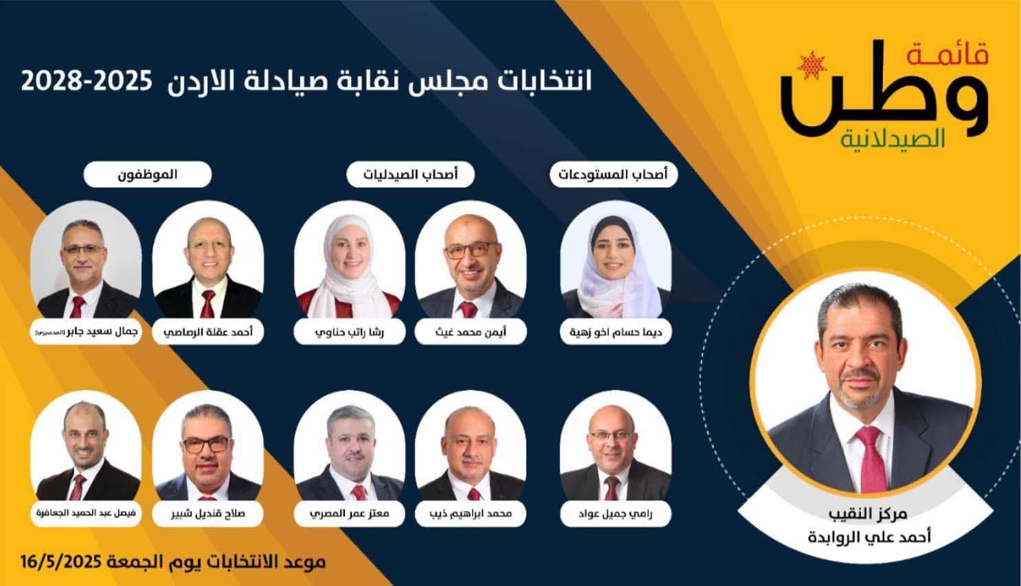 نتقدم نحن في حملة قائمة ( وطن ) ونعلن بكل فخر؛ انطلاق حملتنا الانتخابية لانتخابات نقابة صيادلة الأردن للدورة 2025-2028، التي ستُجرى في 16 مايو 2025.