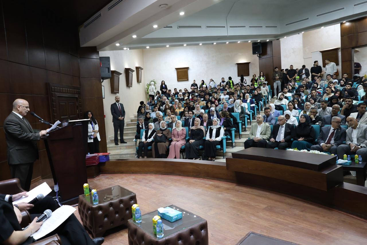 وقد استُهلت الفعاليات بكلمة ألقاها الأستاذ الدكتور غالب عريقات، عميد الكلية، رحب فيها براعي الحفل والحضور الكريم، معبرًا عن امتنانه للدعم المتواصل من إدارة الجامعة لأنشطة الكلية العلمية والتعليمية، ومؤكدًا على أهمية هذا الحدث في تعزيز التواصل الأكاديمي والبحثي، وتوفير منصة لمناقشة أهم القضايا الصحية المتعلقة بموضوعات وتخصصات الأقسام المختلفة في الكلية .