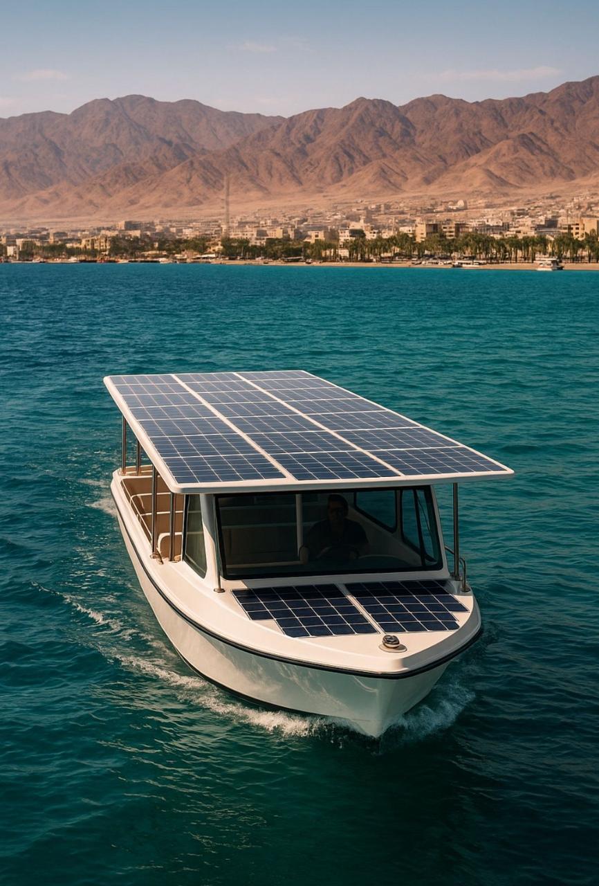 •ألواح شمسية عالية الكفاءة بقدرة 600 واط للوح الواحد، تُركّب على سقف القارب أو مظلته.
