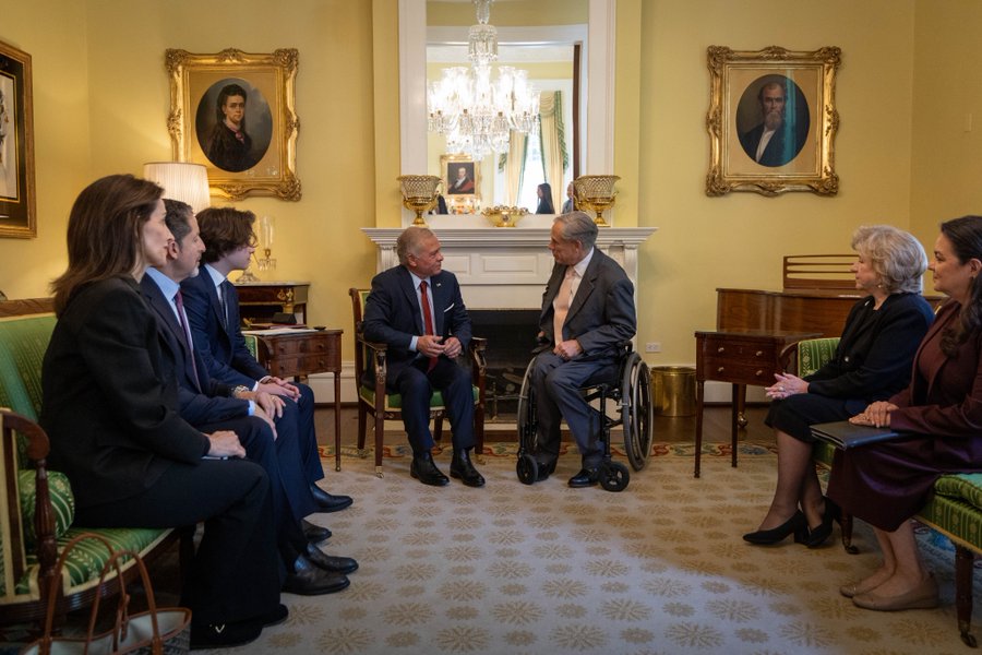 عمان جو- اجتمع جلالة الملك عبدالله الثاني مع حاكم تكساس غريغ أبوت في ولاية تكساس، لبحث تعزيز التعاون بين لأردن وولاية تكساس.